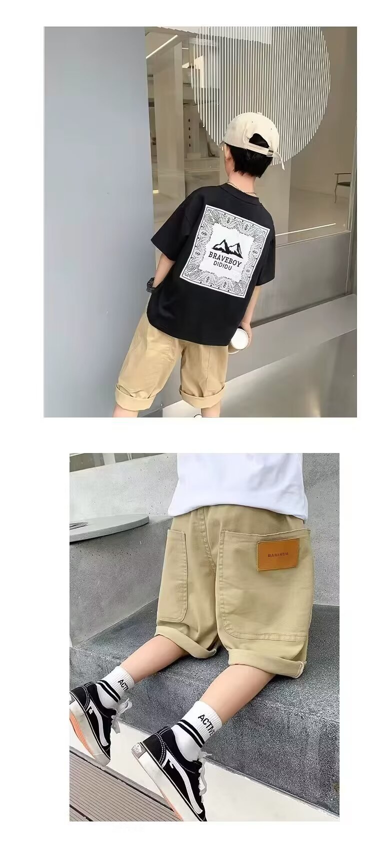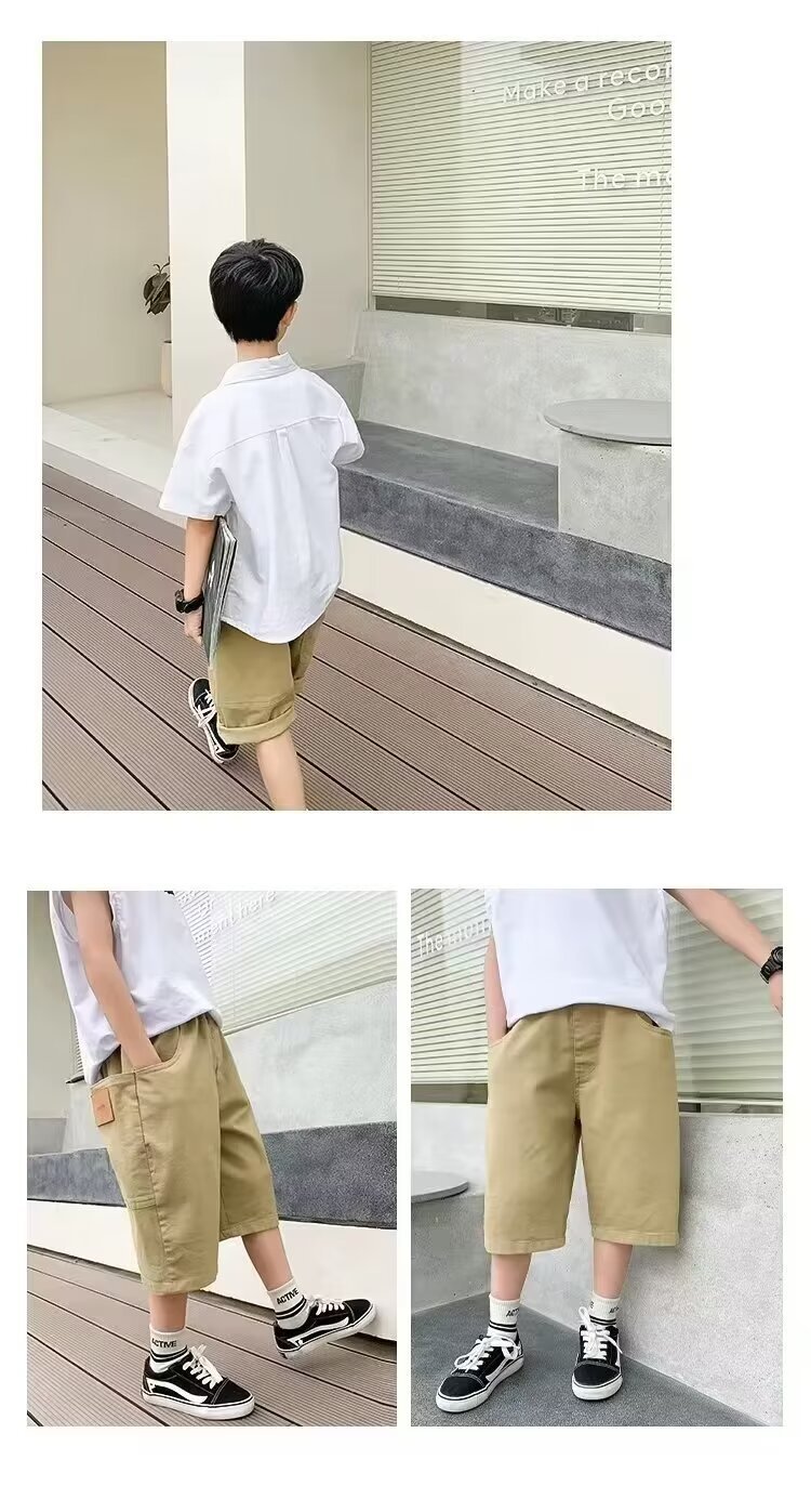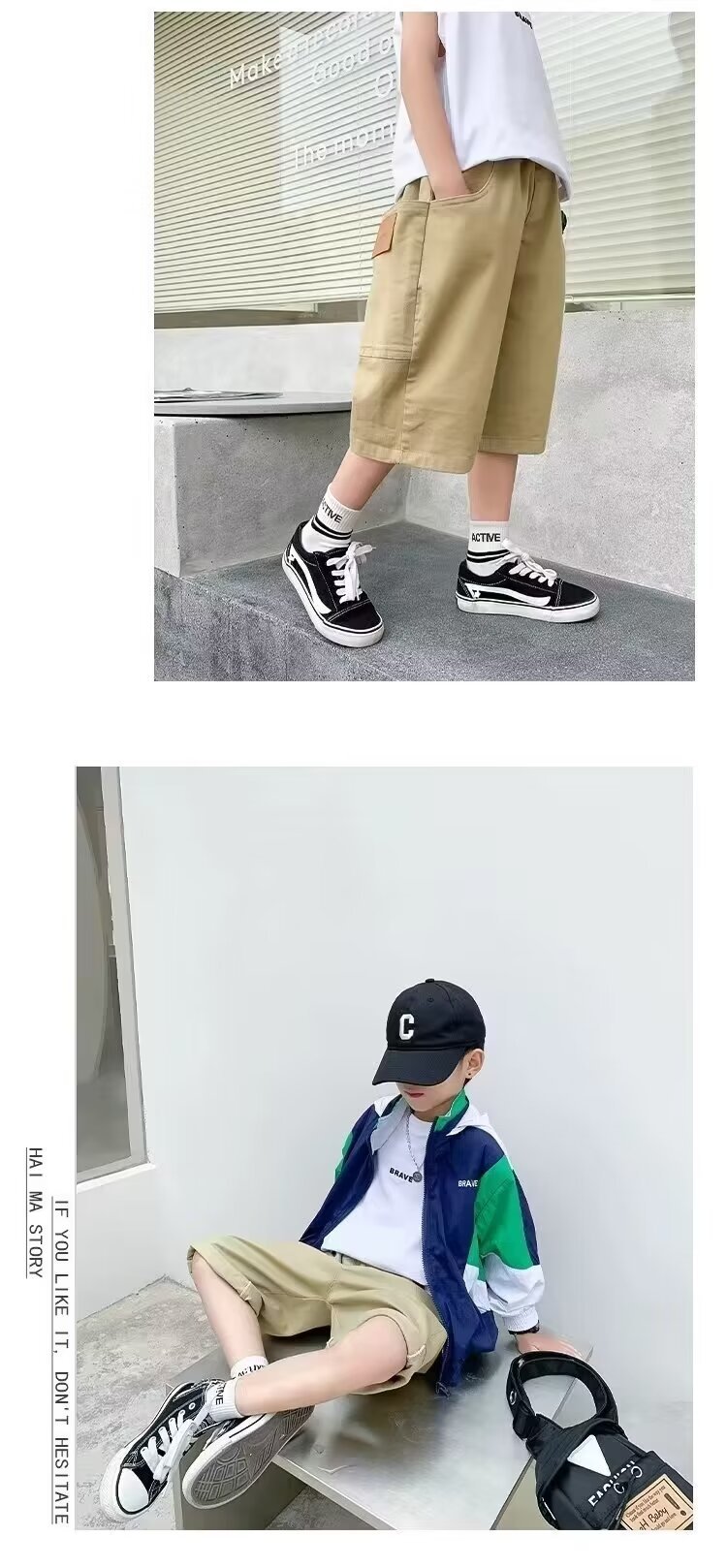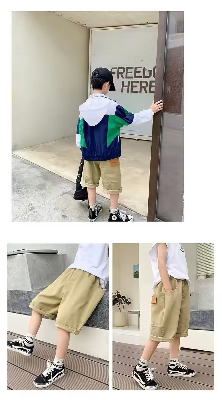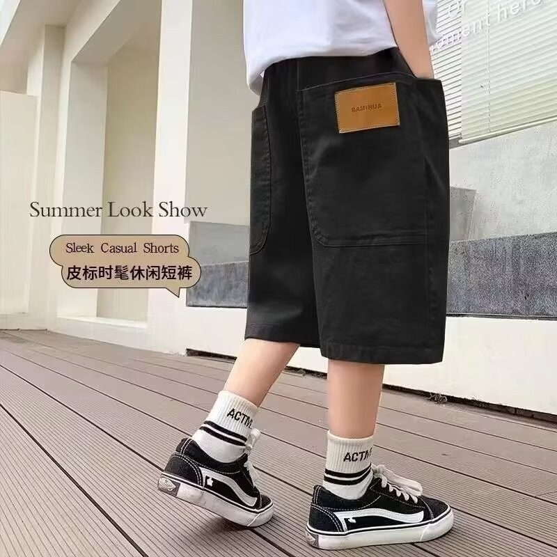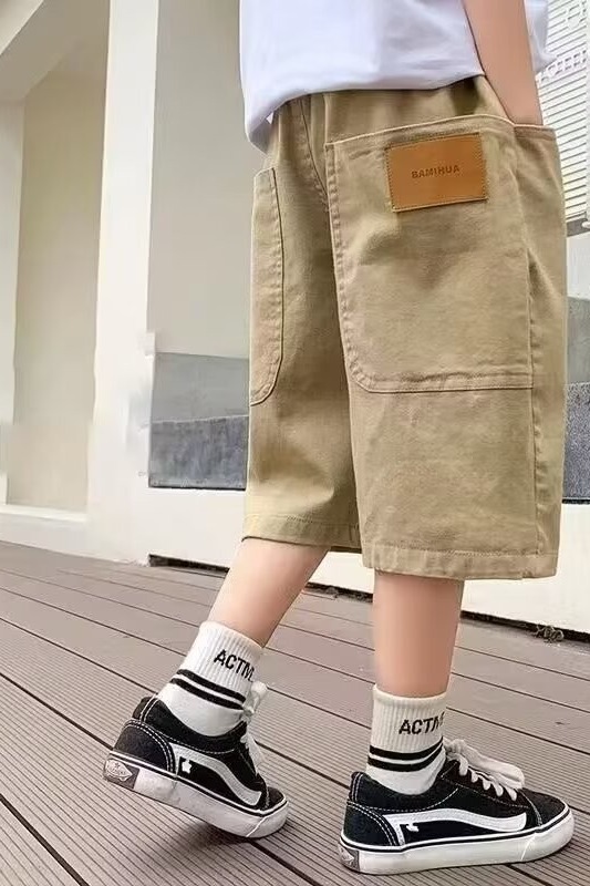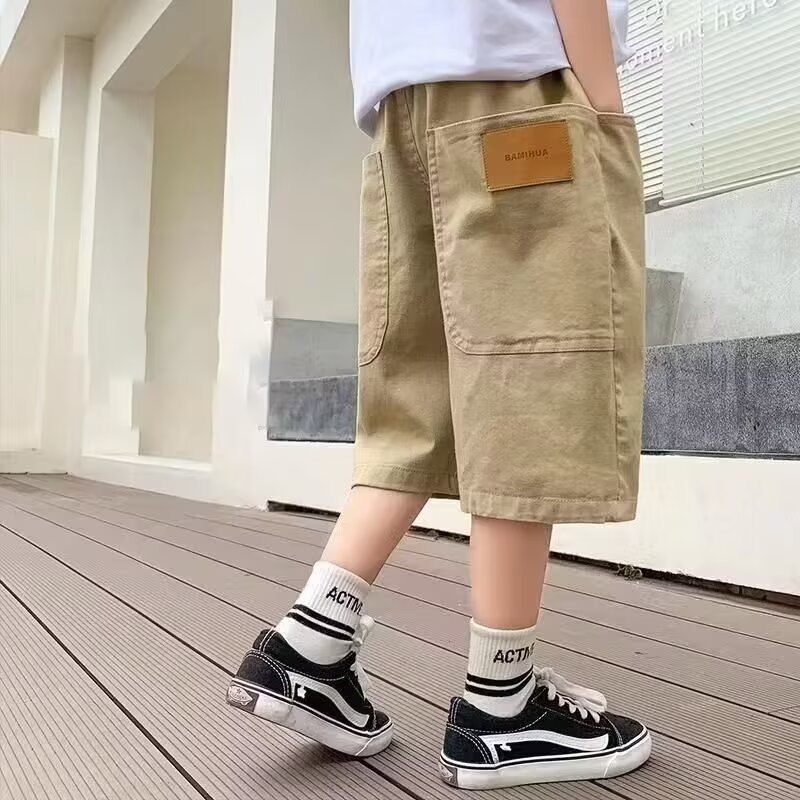 소년 작업 반바지 여름 2024 새로운 스타일 외부 착용 아동복 얇은 바지 유행 바지 여름 어린이 5 점 바지