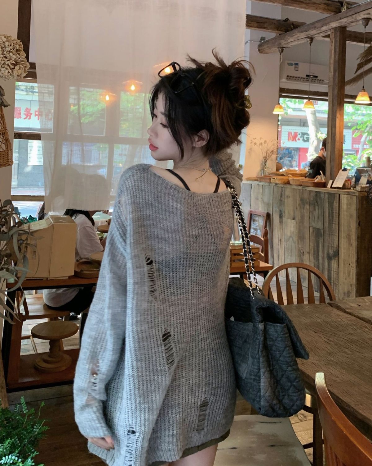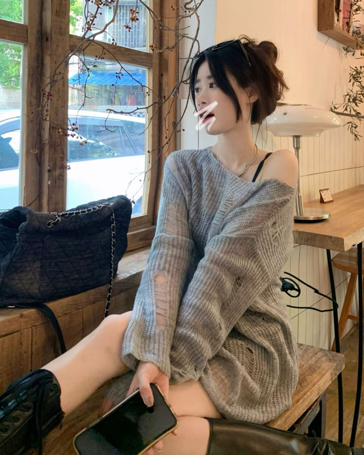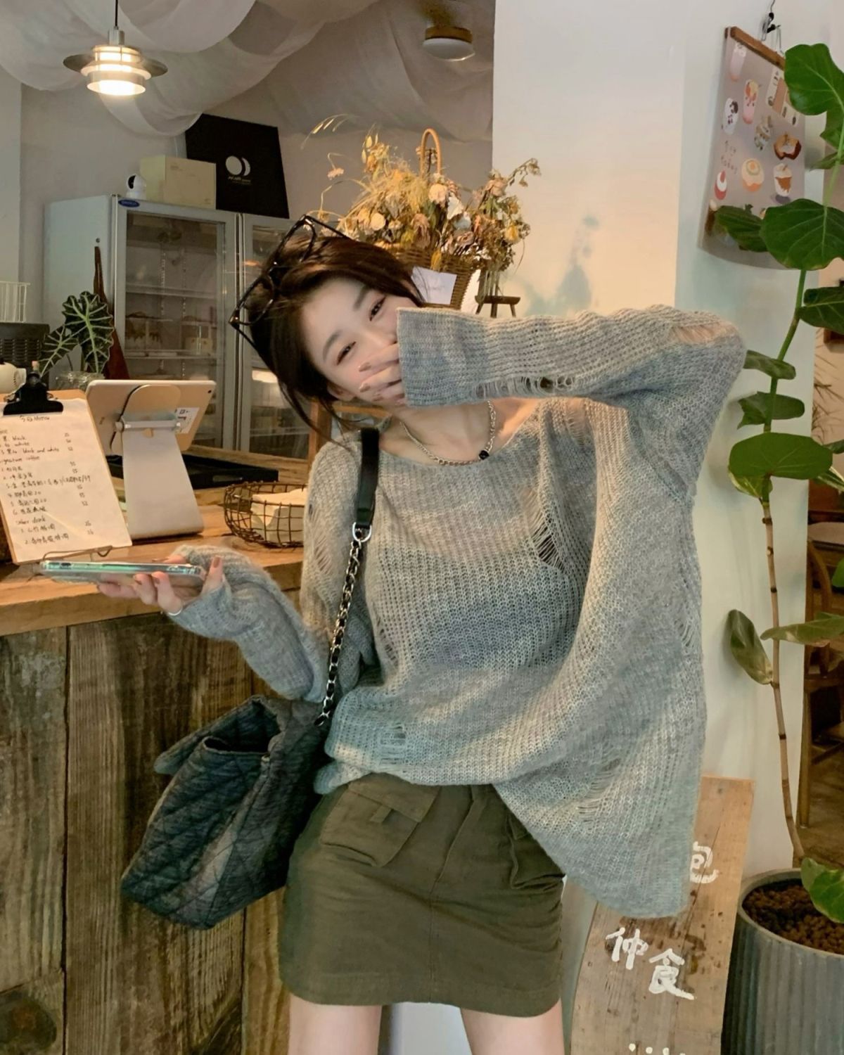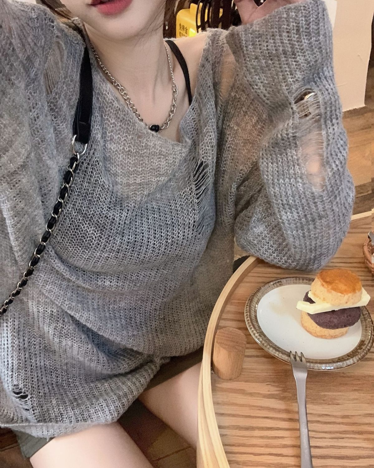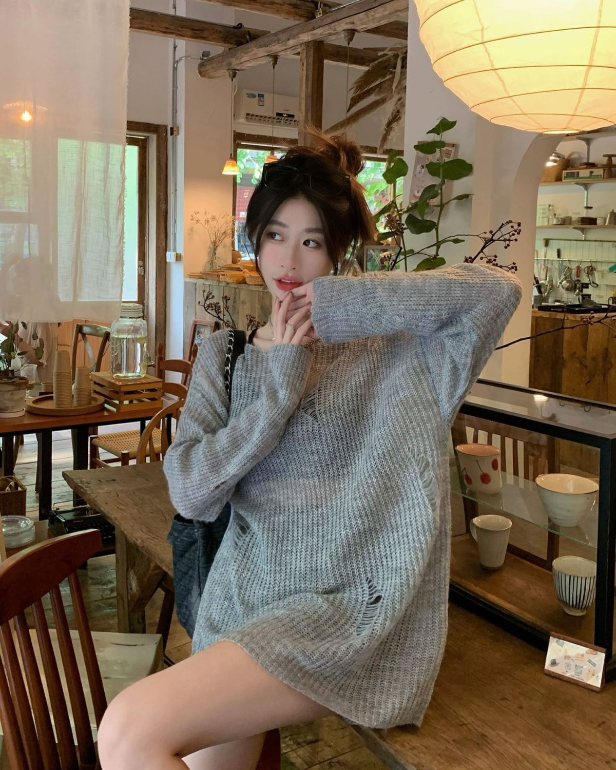 봄과 여름 새로운 한국 스타일 할로우 니트 선스크린 셔츠 여성의 얇은 외부 에어컨 셔츠 프랑스베이스 섹시 탑스토어 가기