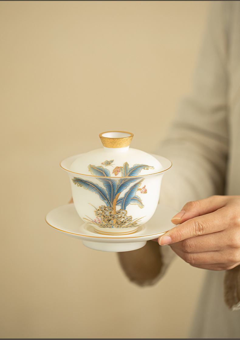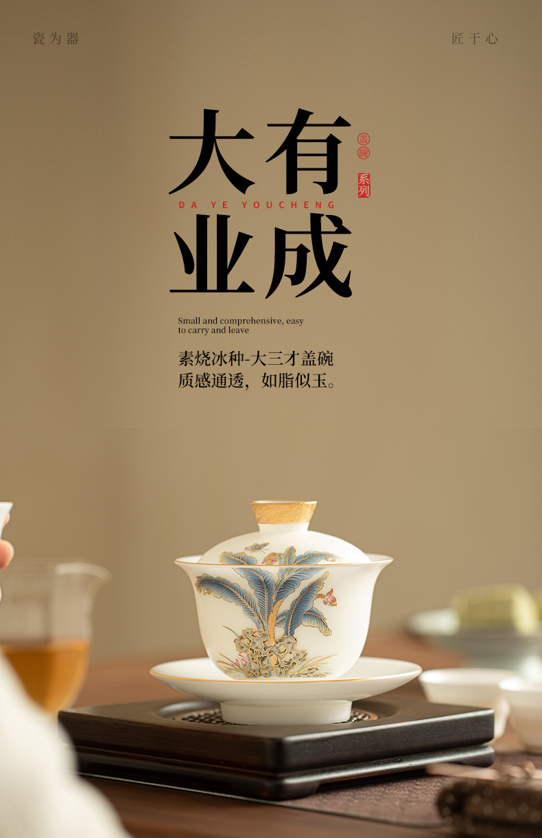 얼음 씨앗 일반 구운 스웨이드 옥 도자기 3 캡 그릇 세라믹 차 세트 흰색 도자기 차 그릇 답답한 차 그릇 절묘한 쿵푸 차 세트스토어 가기