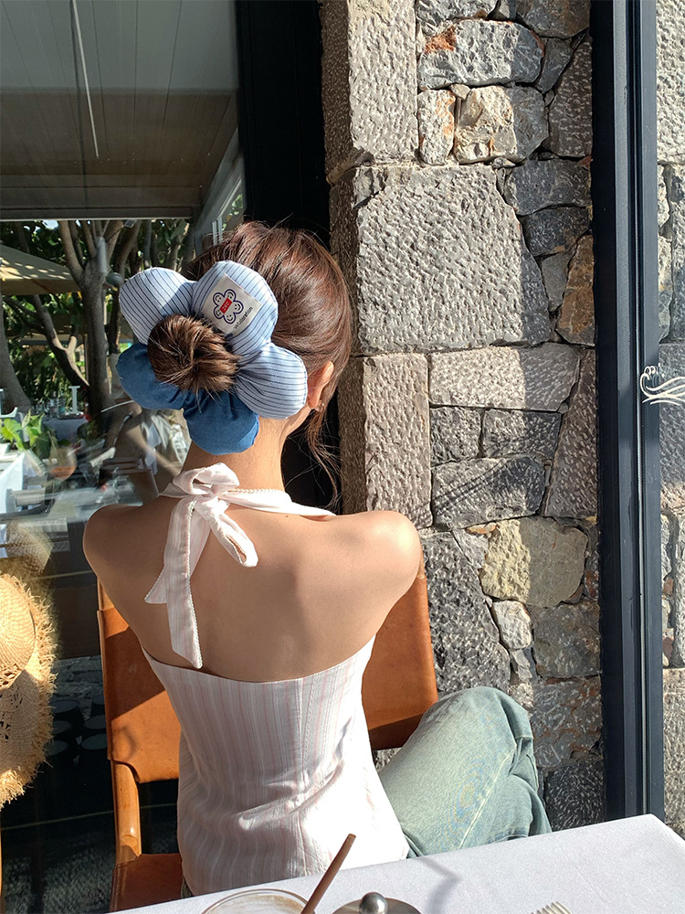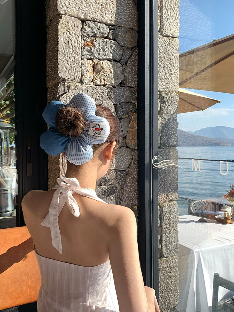 바느질 줄무늬 꽃 머리 반지 여자의 큰 3 차원 꽃 머리 밧줄 큰 그릇 반지 고급 감각 머리 밧줄 공 머리 부속품