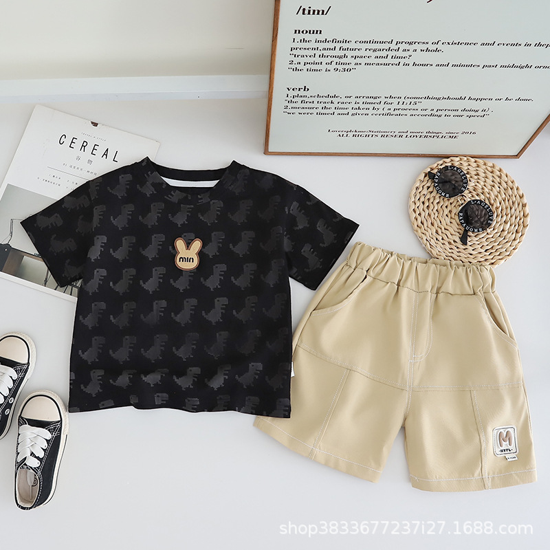 2025 년 새 소년 여름 반팔 세트 아기 아동복 어린이 여름 옷 아기 얇은 투피스 세트 조수스토어 가기