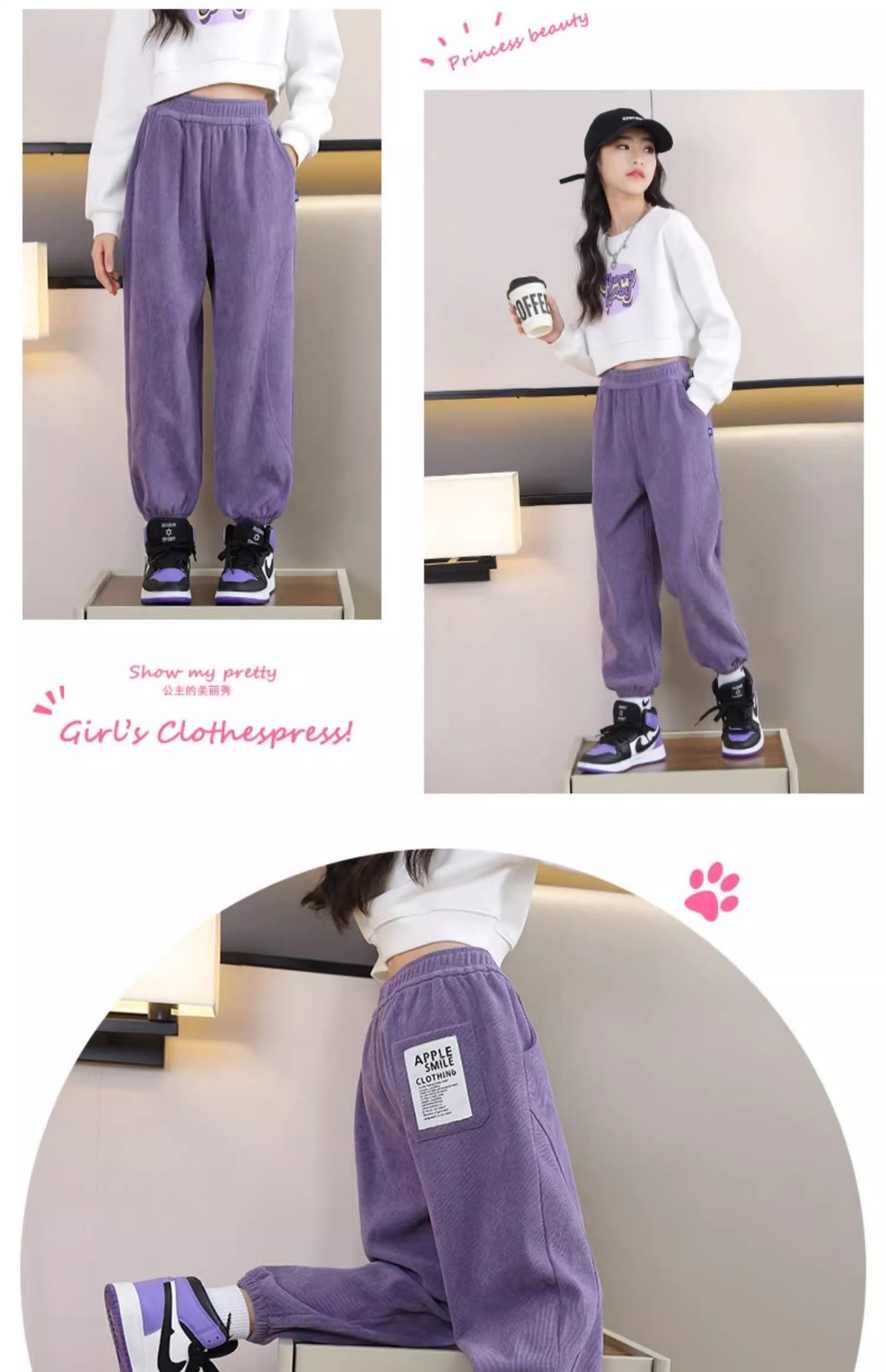어린이 바지 봄과 가을 2025 새로운 여자 레저 스포츠 바지 4-15 세 어린이 코듀로이 바지스토어 가기