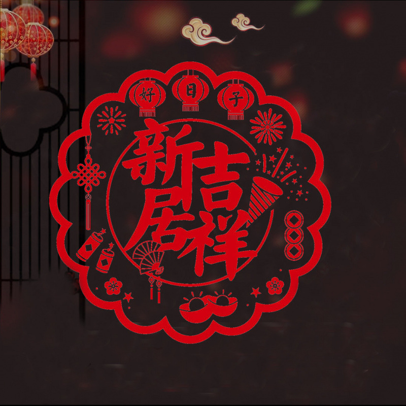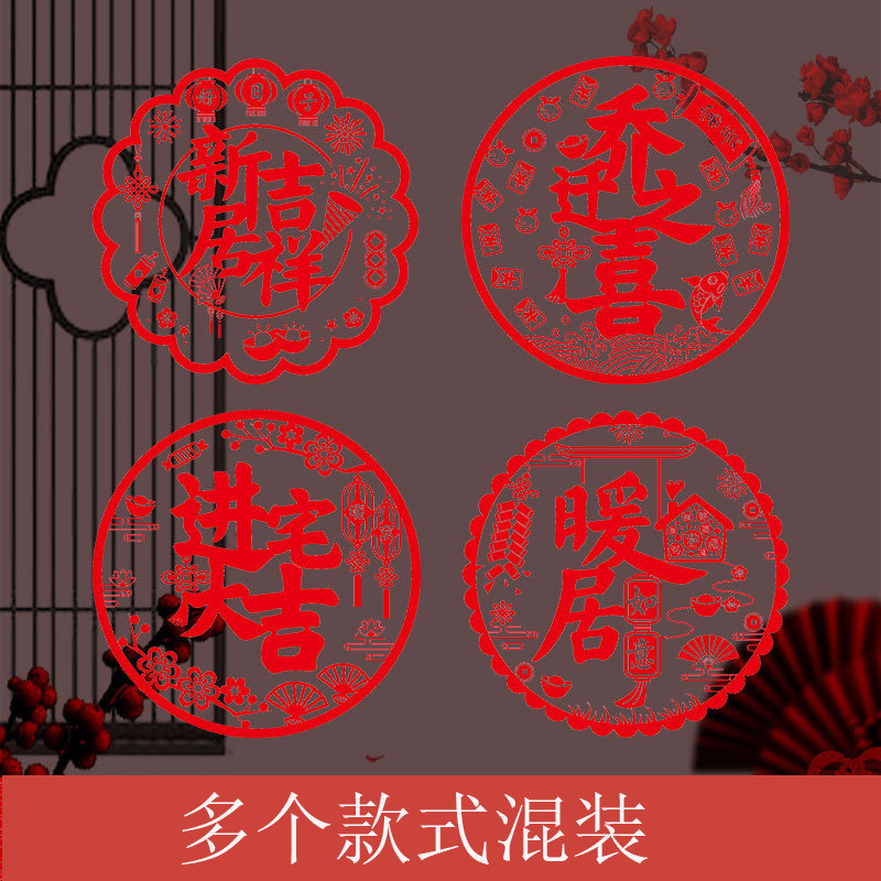 새 집 창 그릴 정전기 스티커로 이동하게되어 기쁩니다. 푸 캐릭터 종이 컷 유리 문 스티커가 집 이동 장식 용품으로 이동스토어 가기