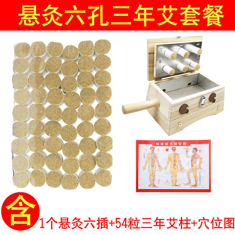 • 오동나무 6침 걸이 뜸 상자 + 뜸쑥 54개 + 그림