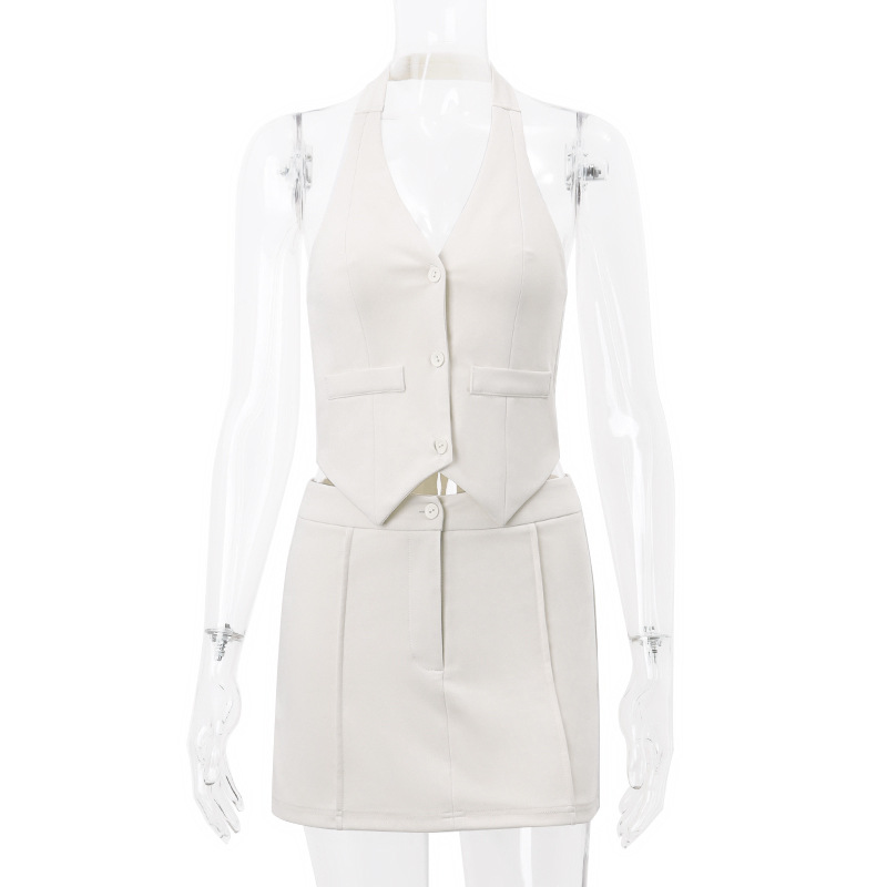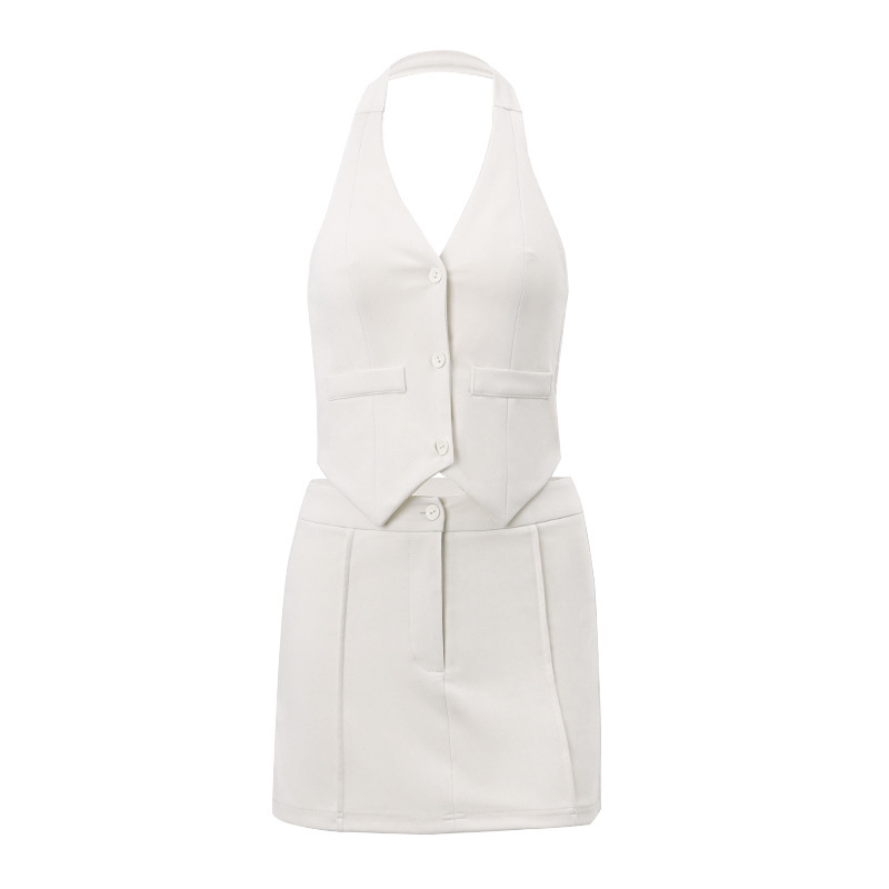 유럽과 미국의 여성 의류 2025 봄과 여름 새로운 섹시한 작은 세트 가짜 포켓 넥 조끼 패션 A 라인 스커트 세트스토어 가기