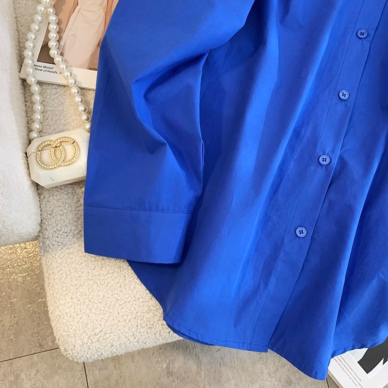 봄 식물 착용 ~ 화이트 아보카도 그린 코튼 긴 소매 셔츠 여성용 도파민 솔리드 컬러 셔츠 재킷스토어 가기