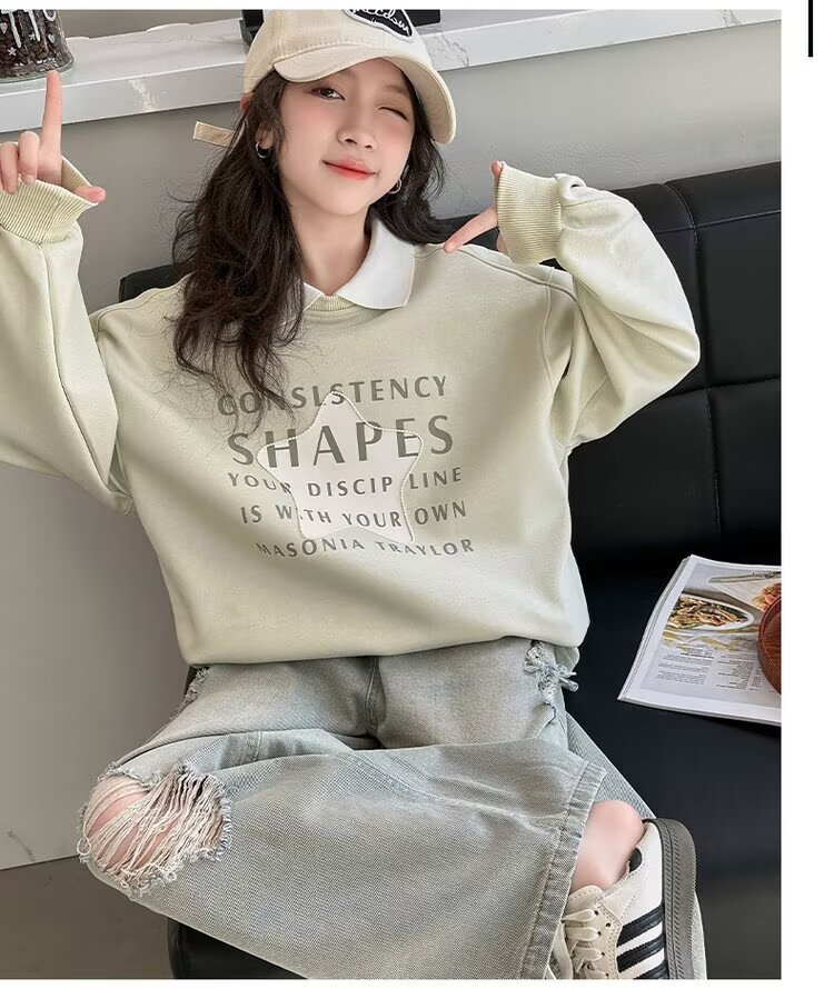 어린이 봄과 가을 스웨트 셔츠 2024 새로운 소녀의 세련된 서양식 가을 옷 큰 소년 소녀의 가을 재킷 어린이 의류스토어 가기
