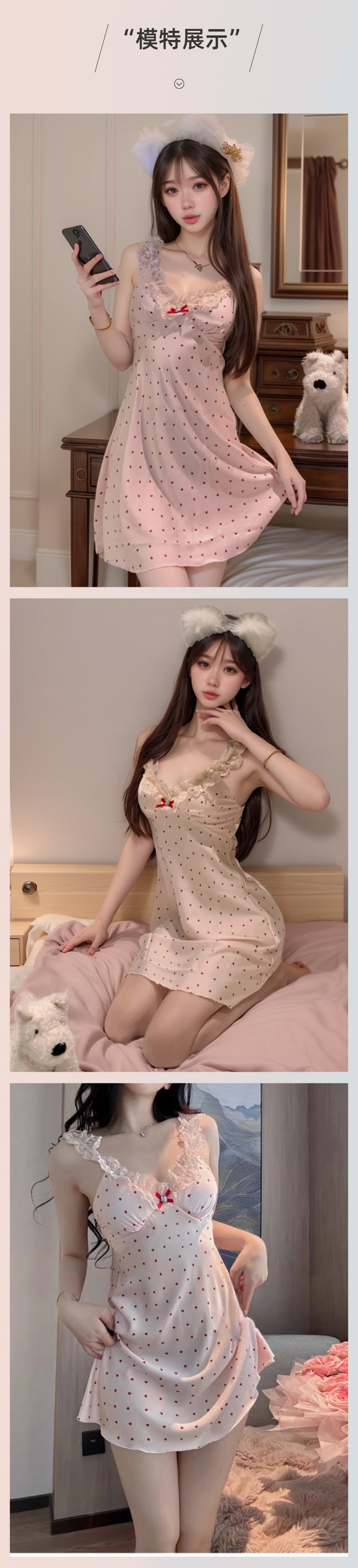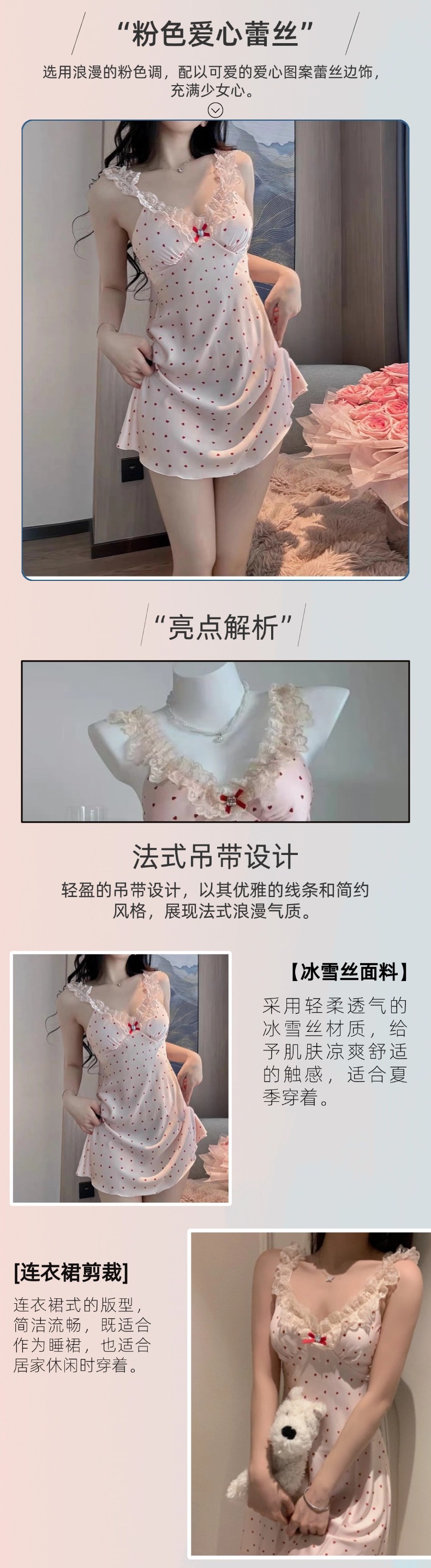 Laptoids 프렌치 슬링 원피스 아이스 실크 나이트 드레스 핑크 러브 레이스 소녀 여름 얇은 순수한 폭풍스토어 가기