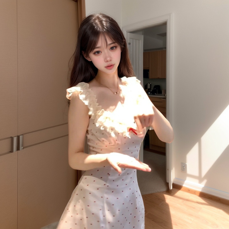 • 작은 하트 도트 멜빵 + 흰색 스타킹
