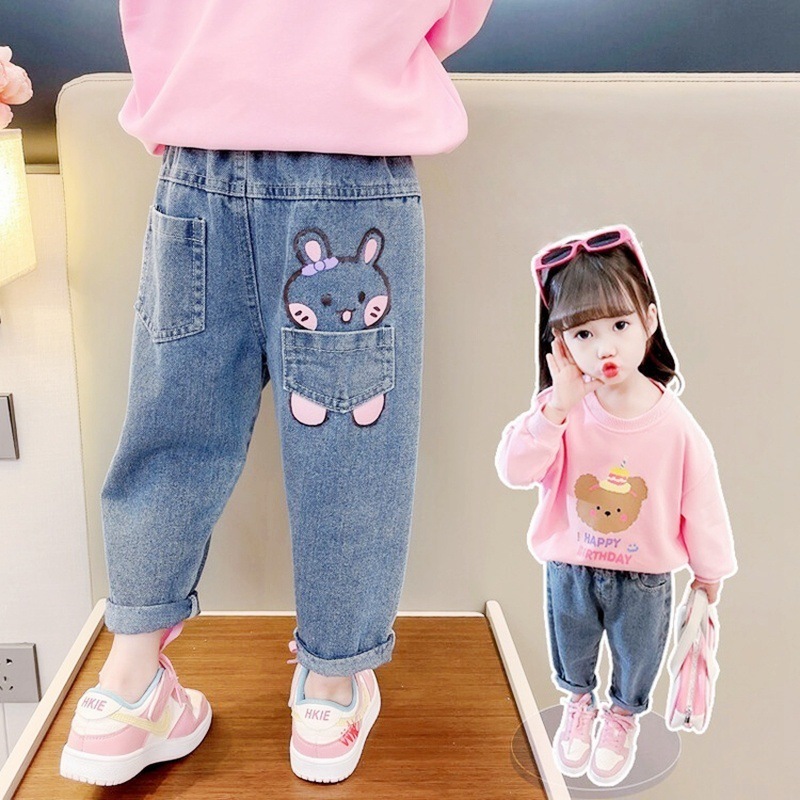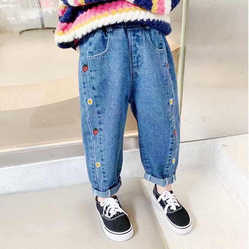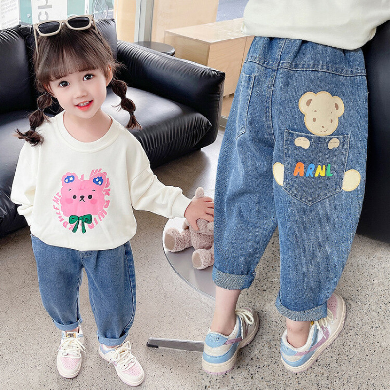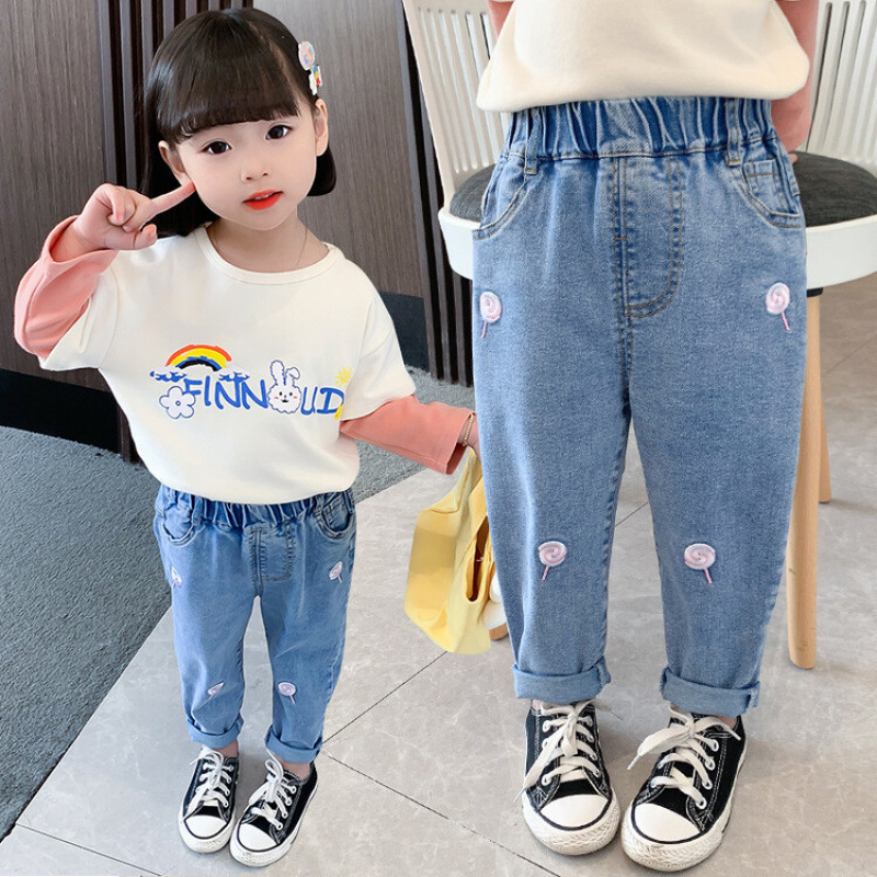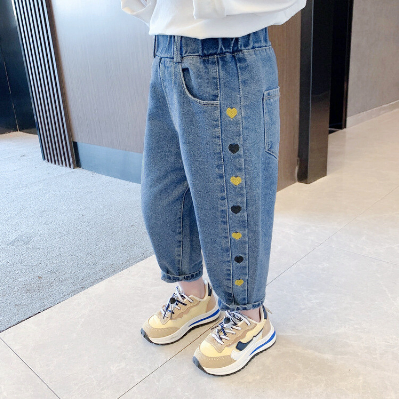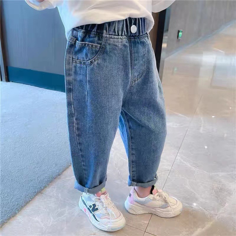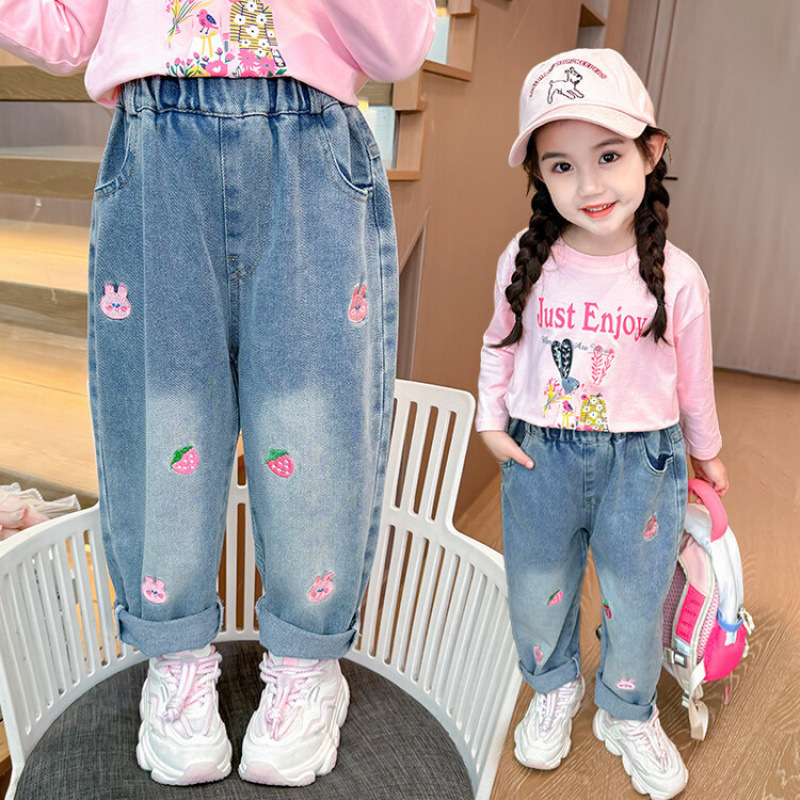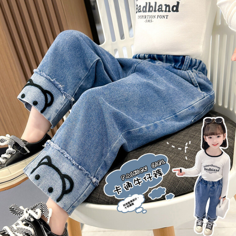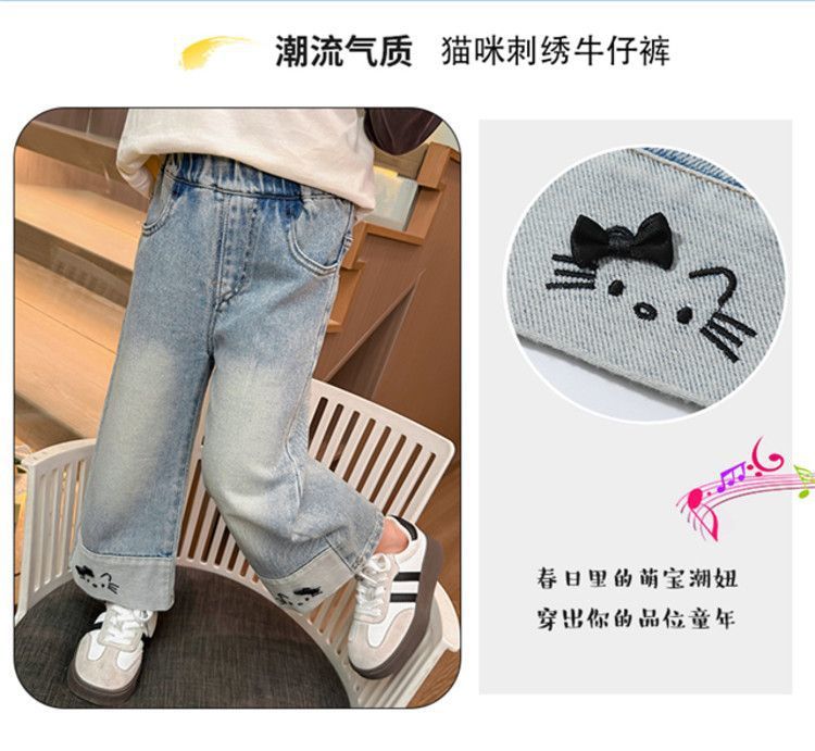 소녀 청바지 2025 봄과 가을 새로운 스타일 한국 스타일 느슨한 스트레이트 세련된 소녀의 유행 넓은 다리 바지스토어 가기