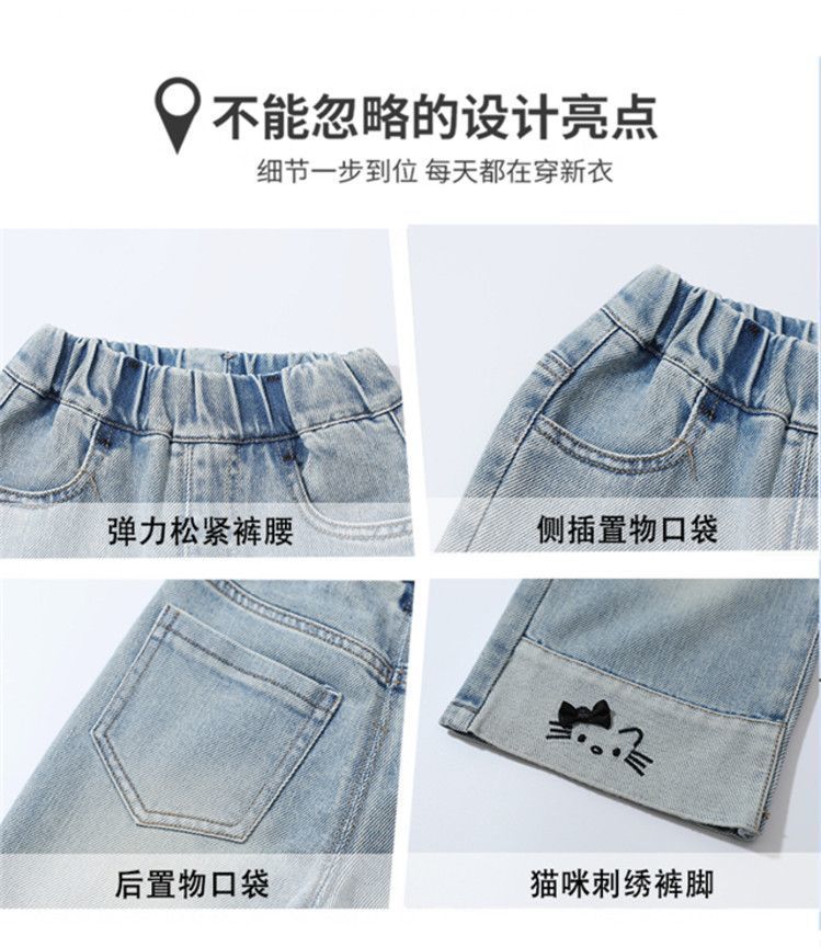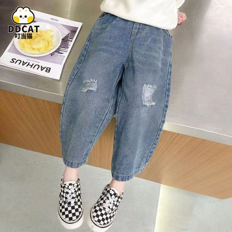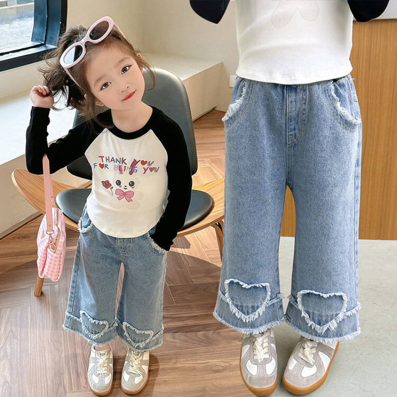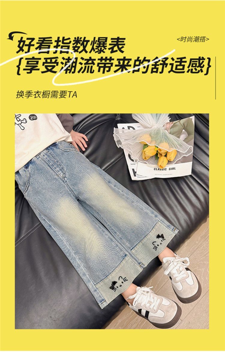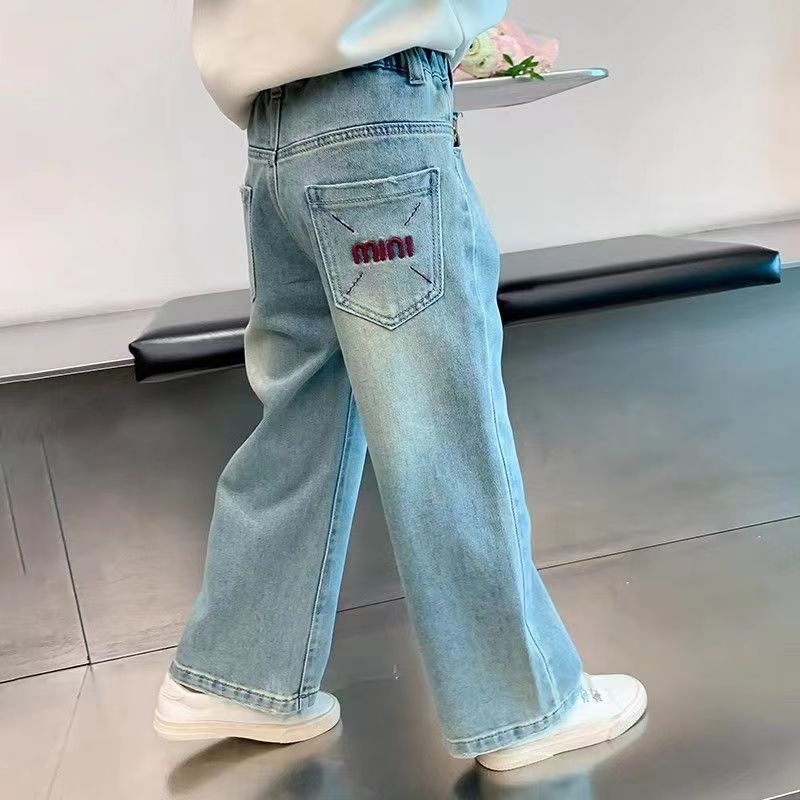소녀 청바지 2025 봄과 가을 새로운 스타일 한국 스타일 느슨한 스트레이트 세련된 소녀의 유행 넓은 다리 바지