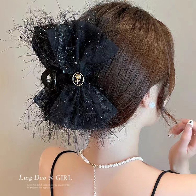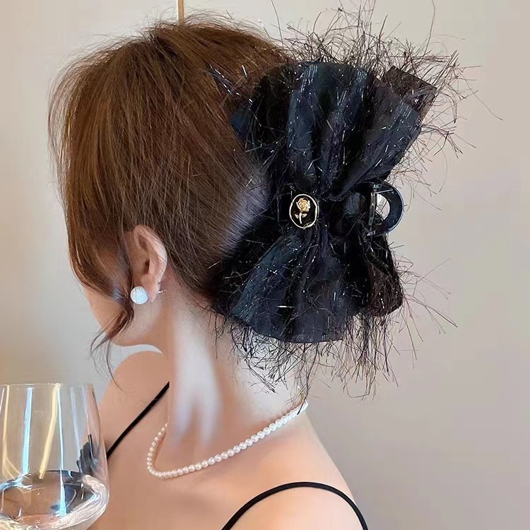 패브릭 메쉬 멀티 레이어 활 헤어핀 달콤한 패션 백 헤드 디스크 헤어 클립 소녀의 하트 헤어 액세서리
