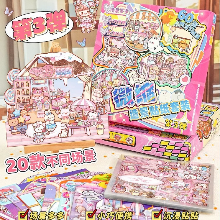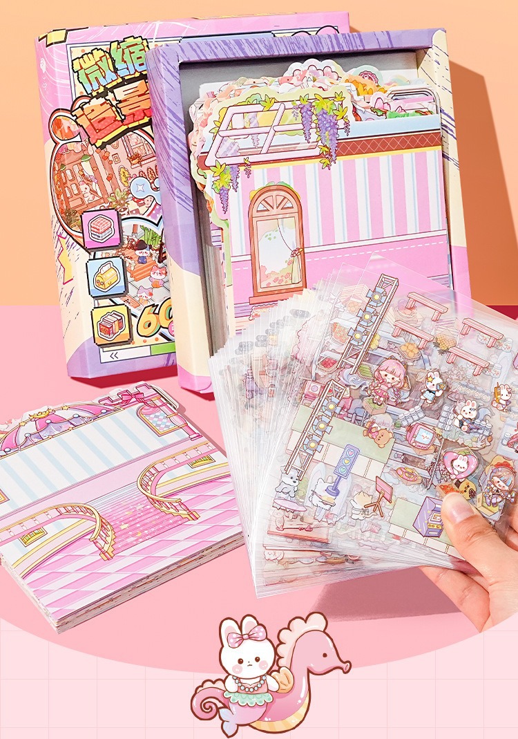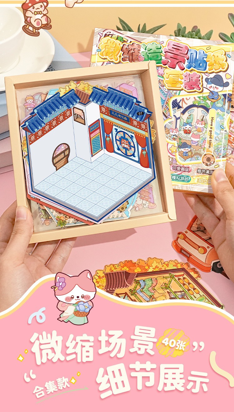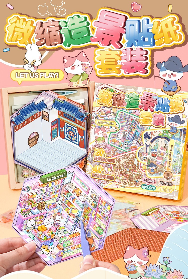 미니어처 장면 컬렉션이 창조적 인 조경 스티커 책 만화 3 차원 오두막 어린이 장난감 수제 DIY 스티커스토어 가기