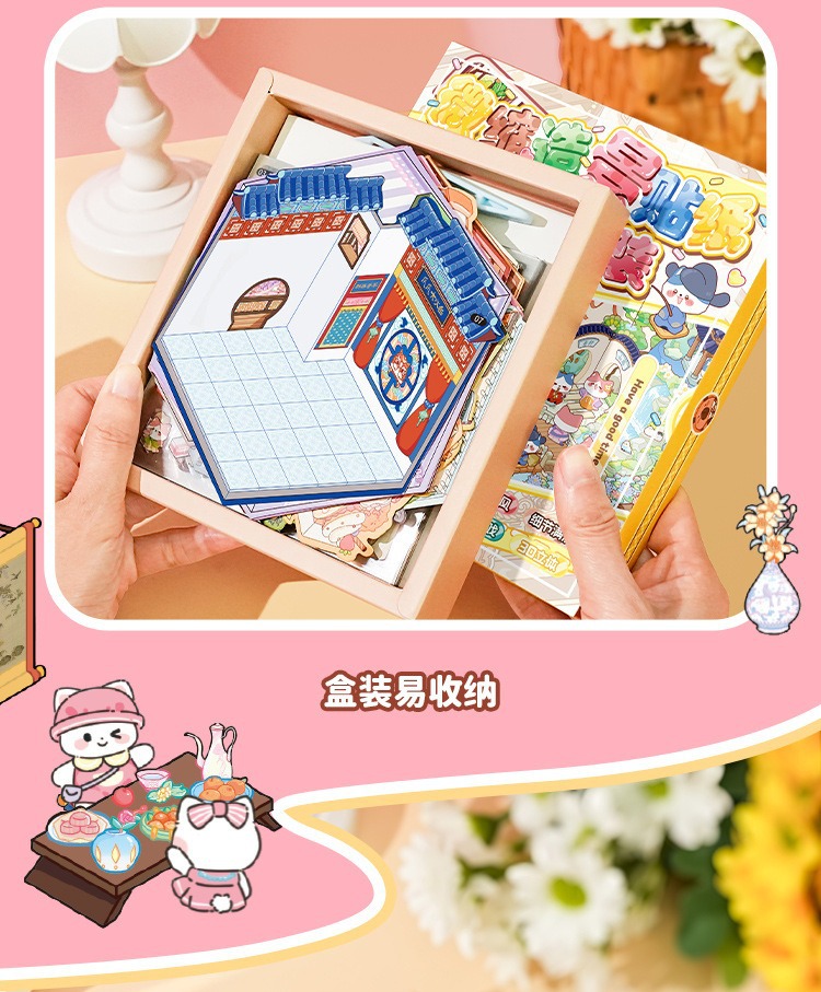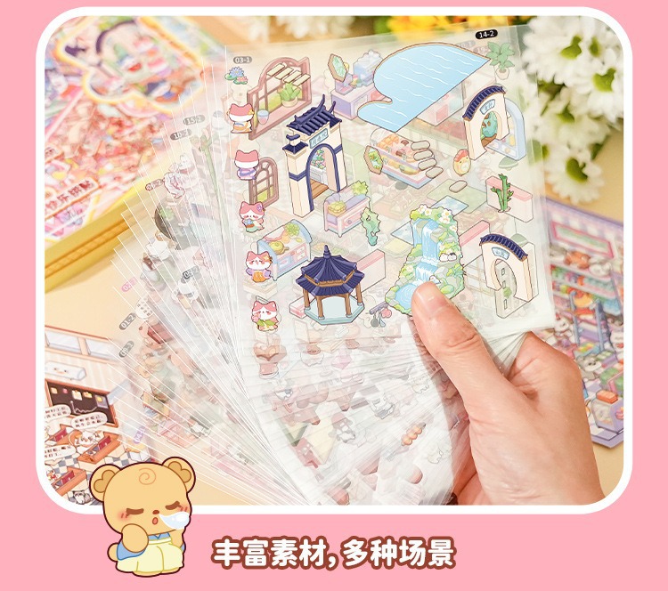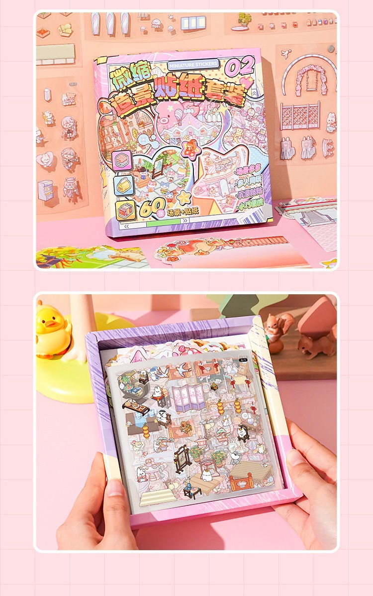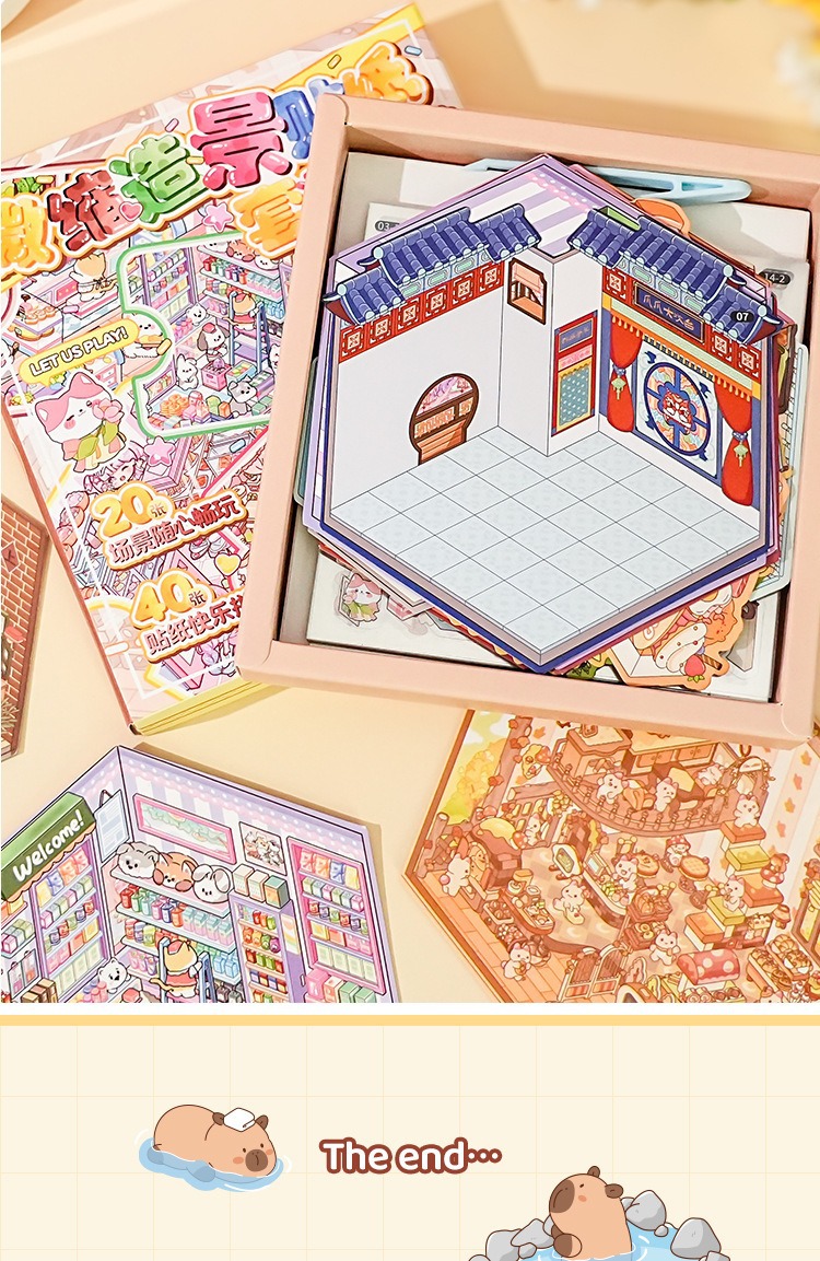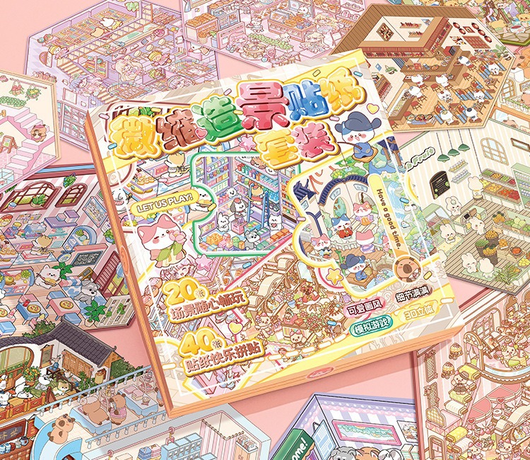 미니어처 장면 컬렉션이 창조적 인 조경 스티커 책 만화 3 차원 오두막 어린이 장난감 수제 DIY 스티커스토어 가기