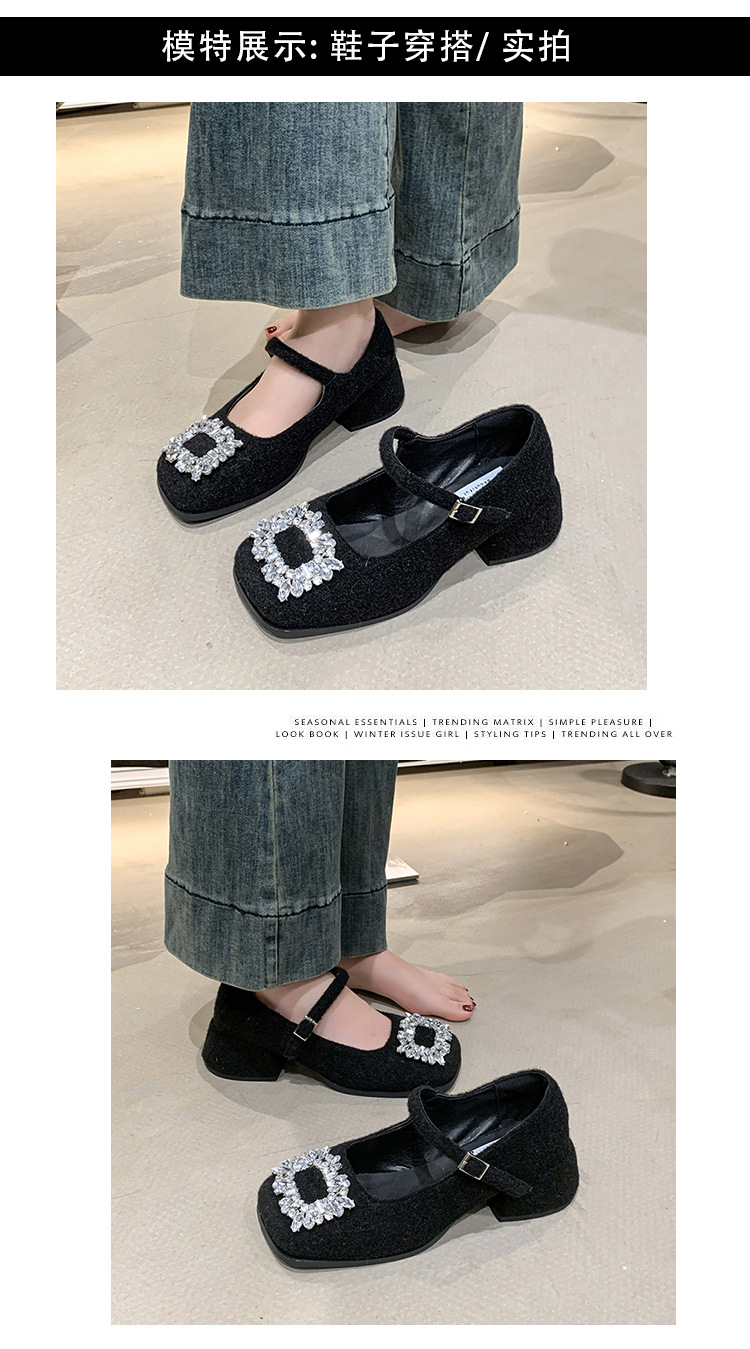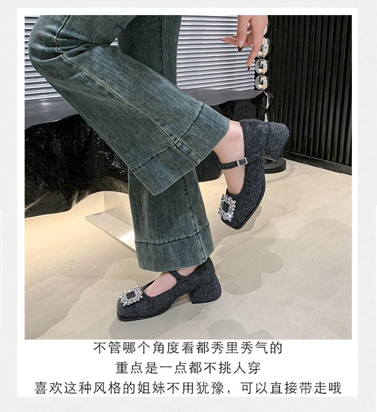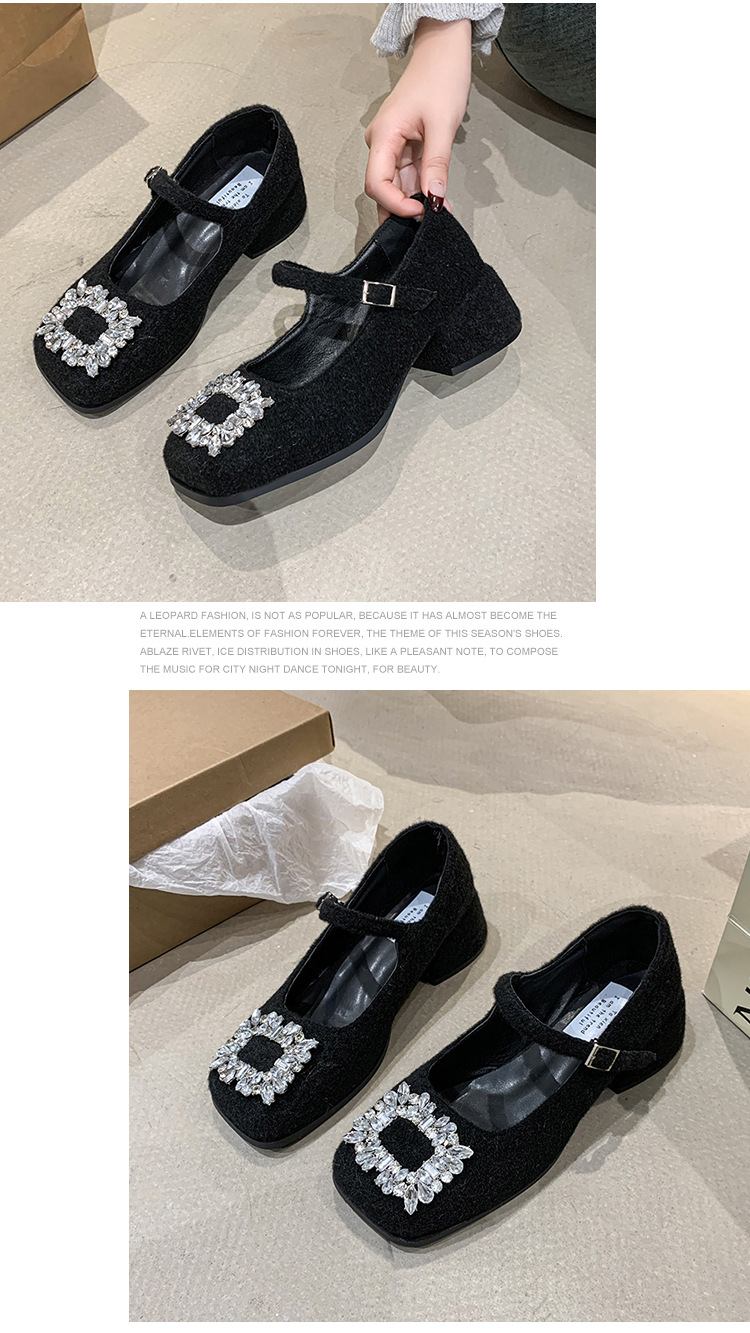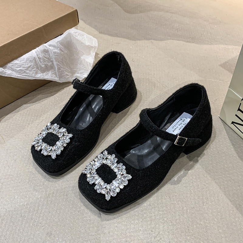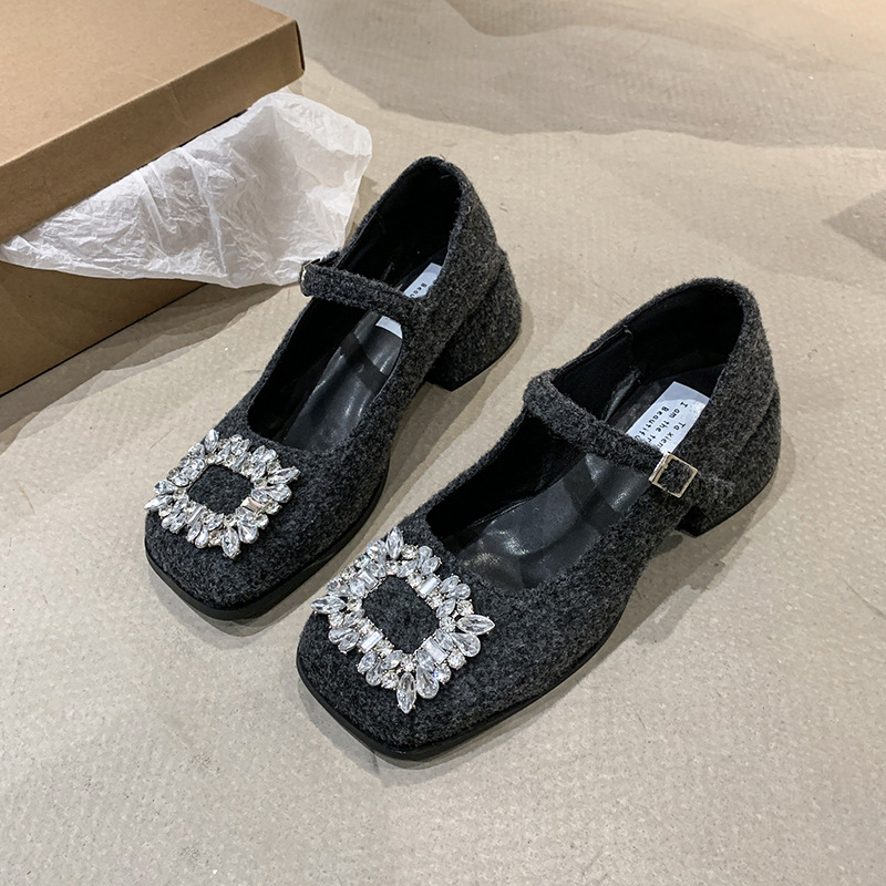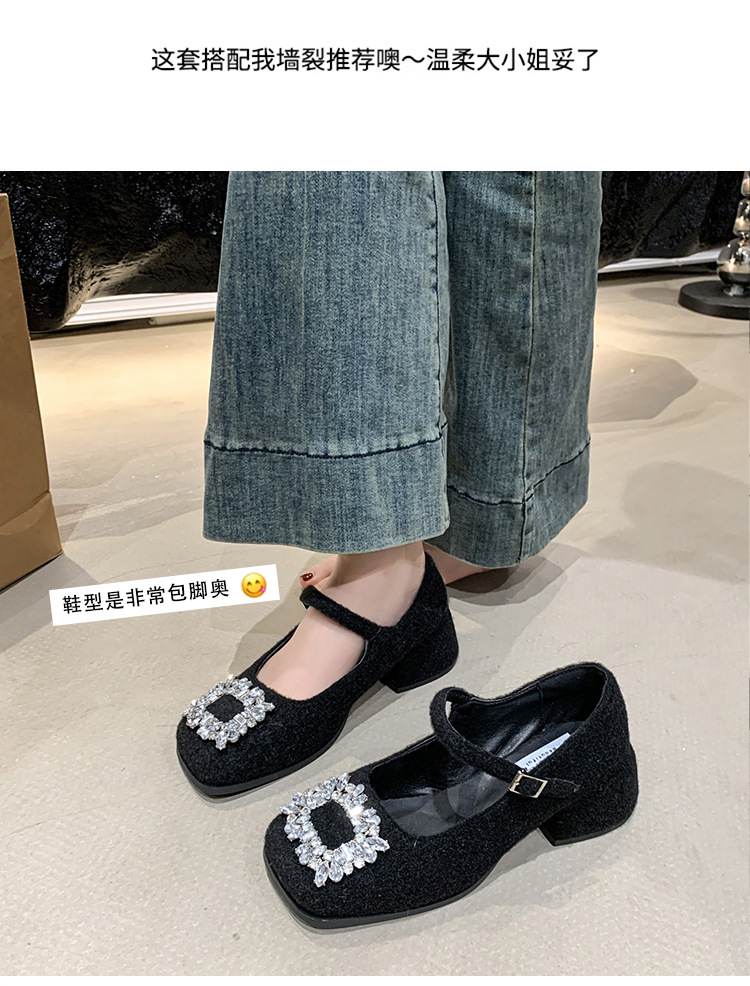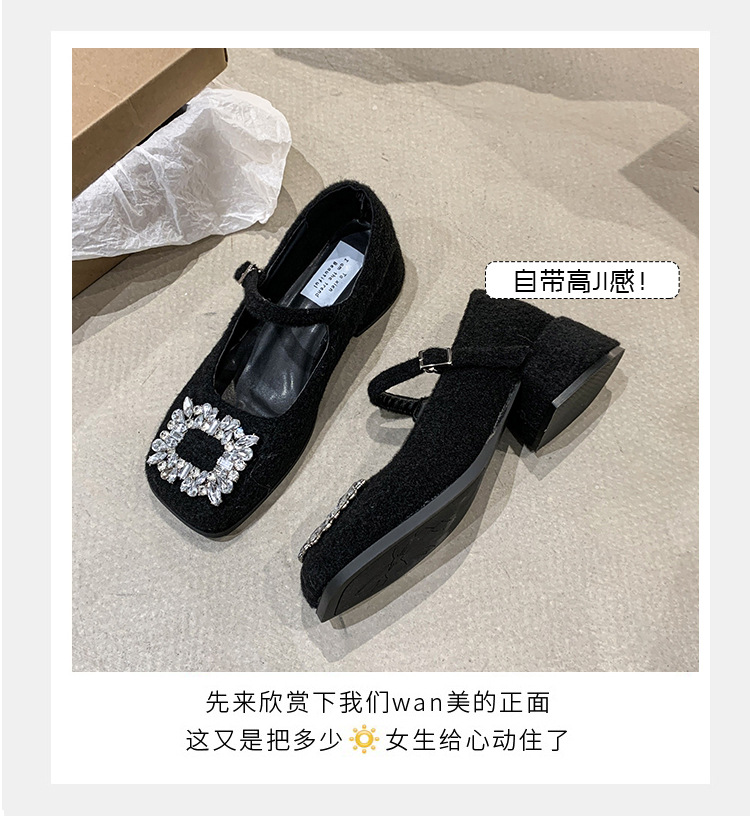 새로운 저녁 바람 저녁 우아한 봄 요정 메리 제인 신발 프렌치 레트로 라인스톤 싱글 신발 여성 한국 스타일 하이힐 청키 힐