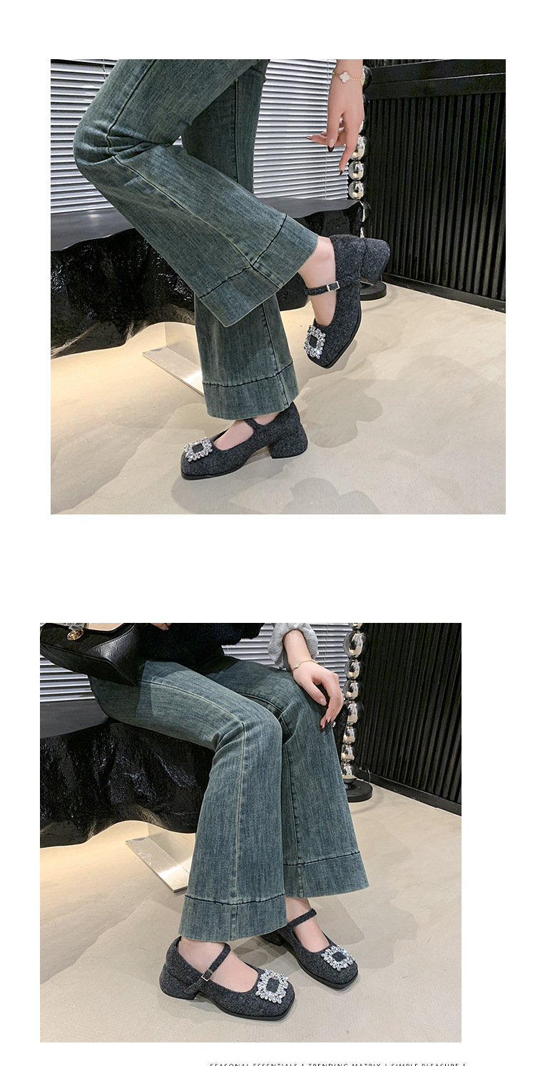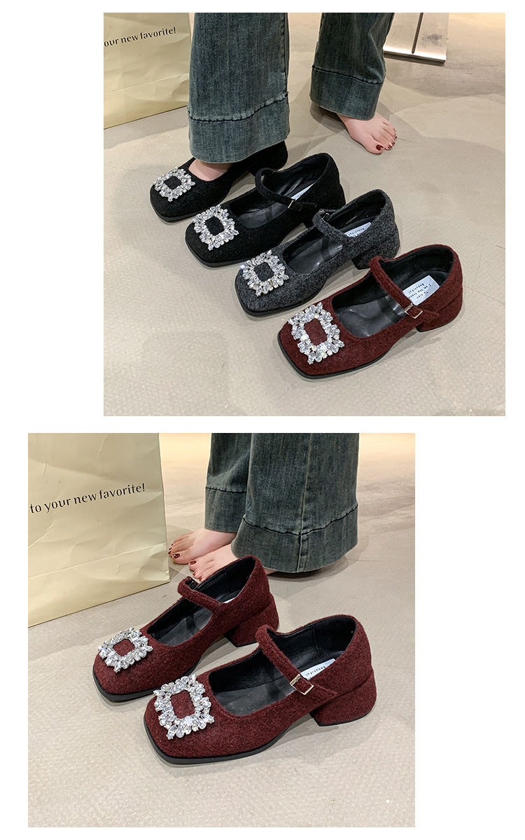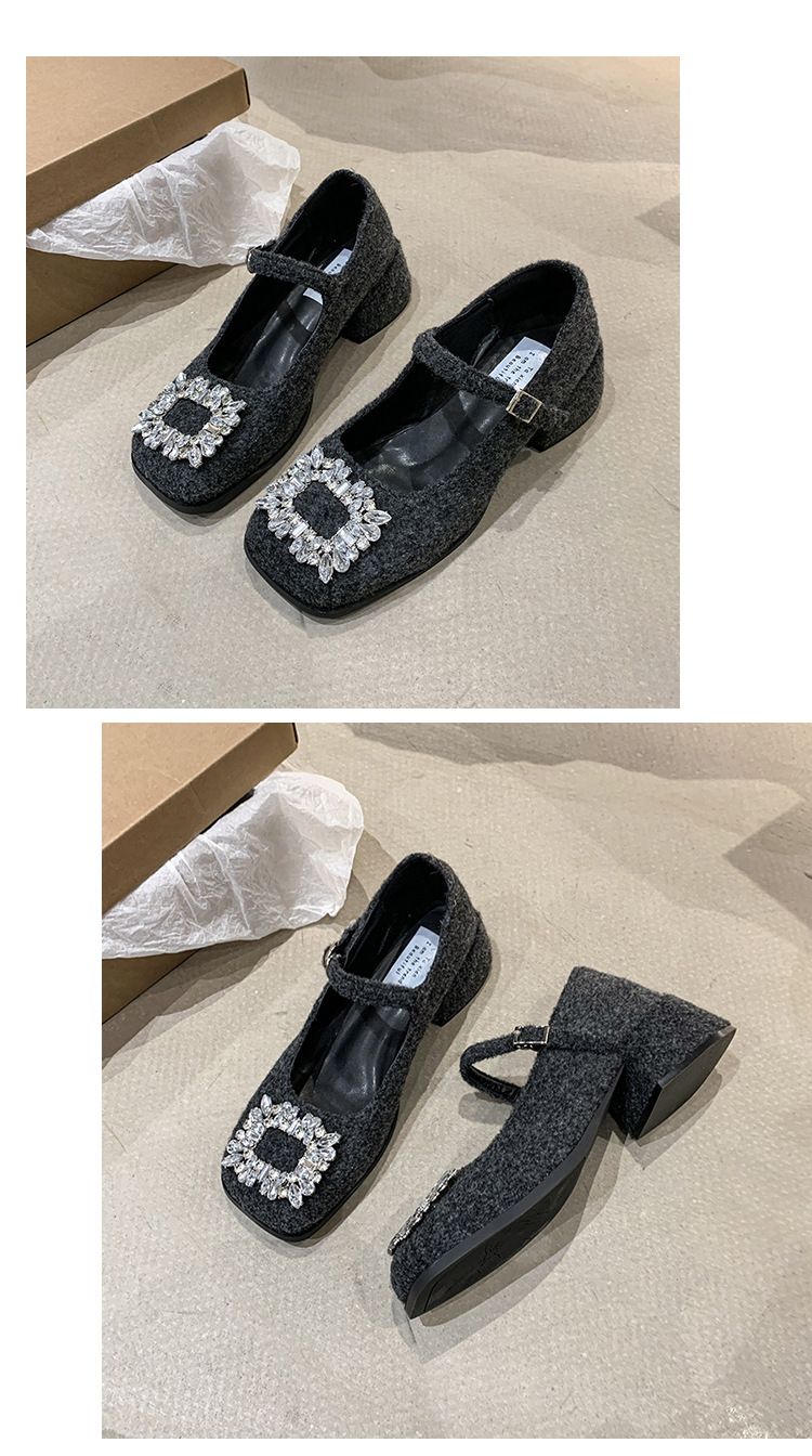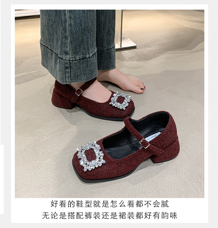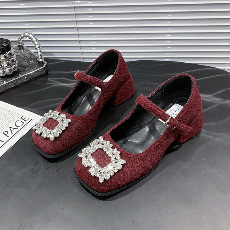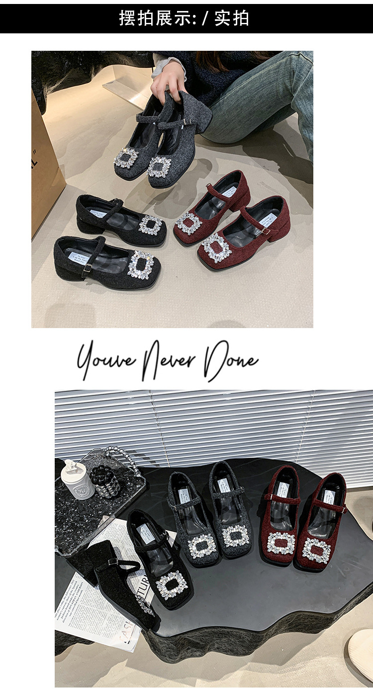 새로운 저녁 바람 저녁 우아한 봄 요정 메리 제인 신발 프렌치 레트로 라인스톤 싱글 신발 여성 한국 스타일 하이힐 청키 힐