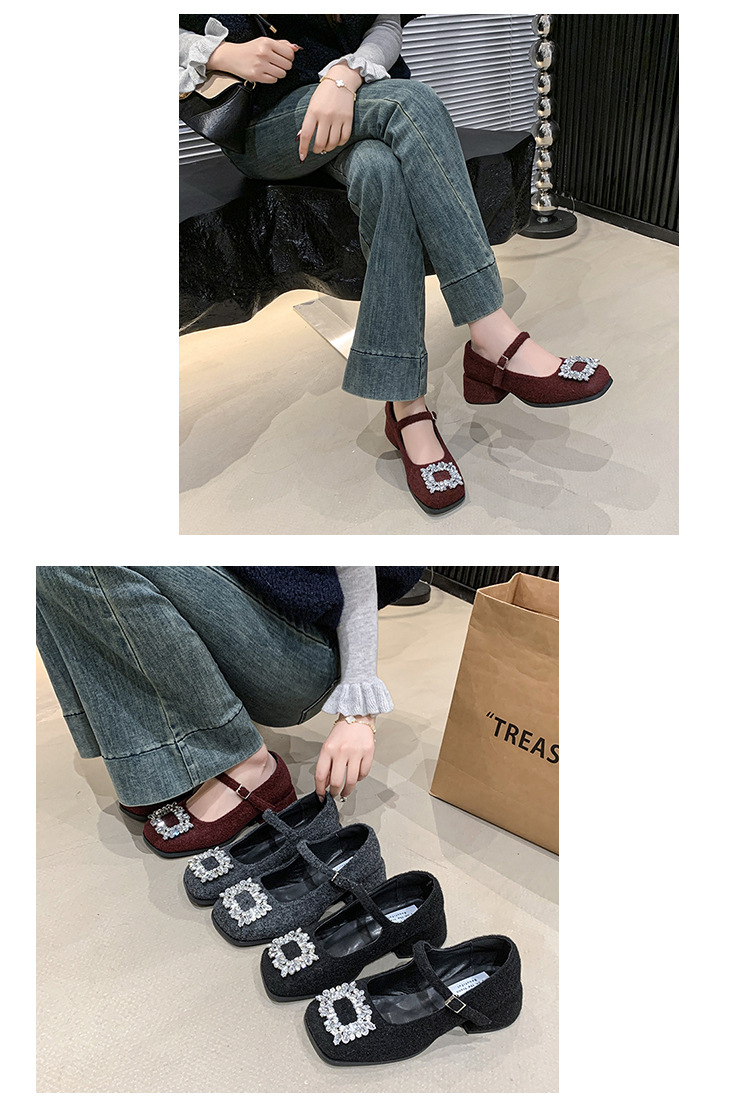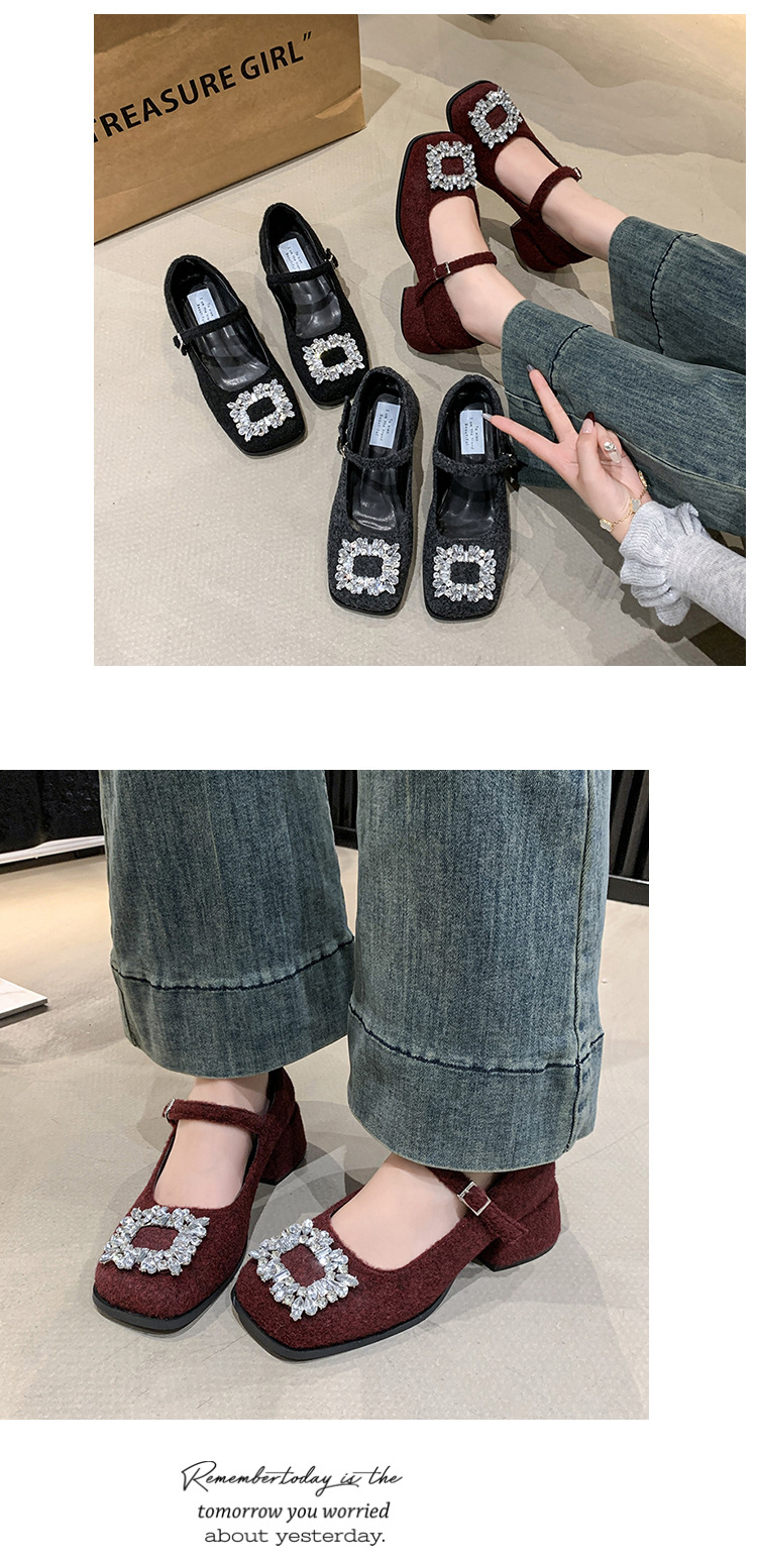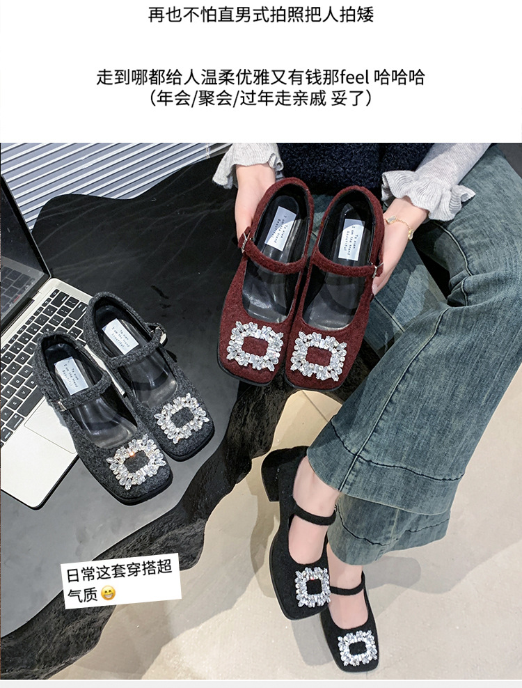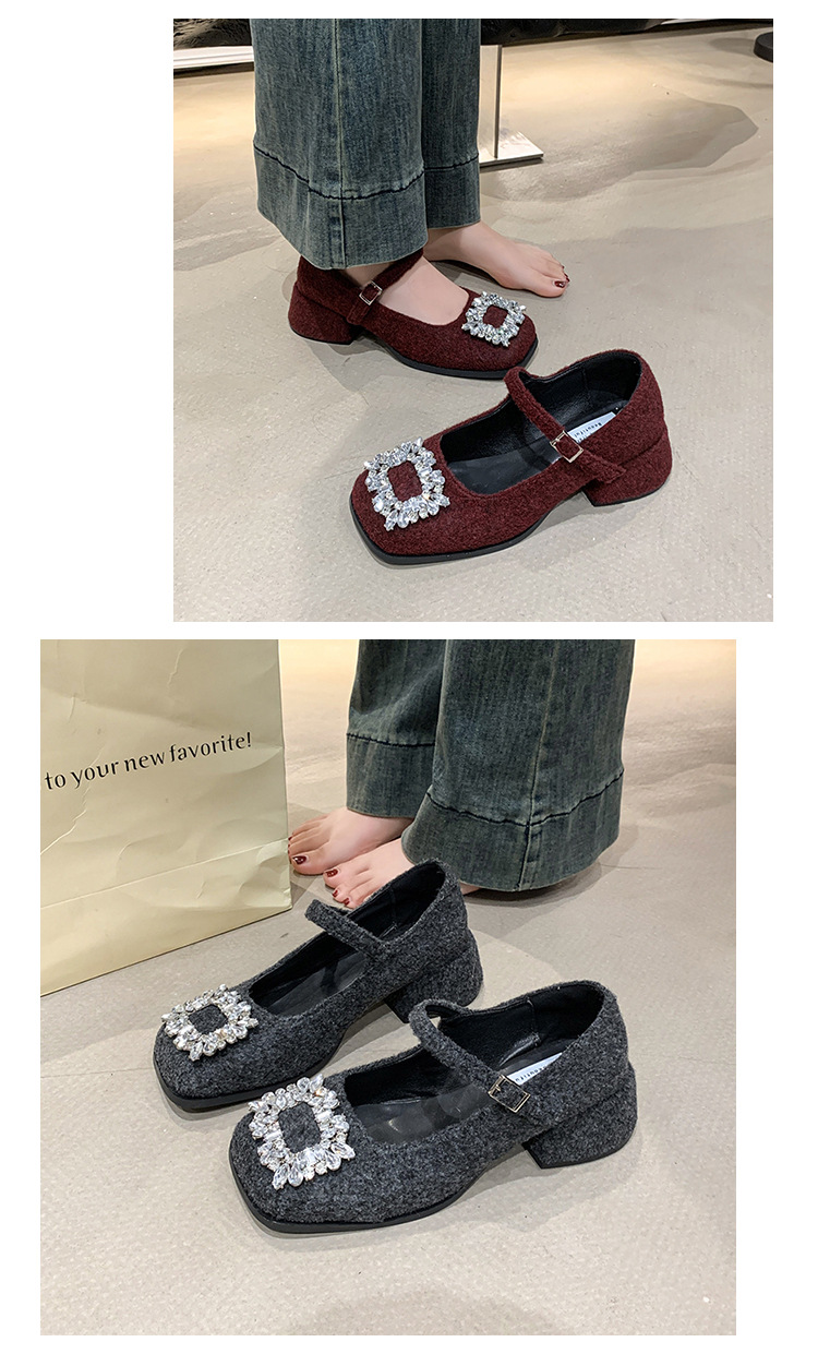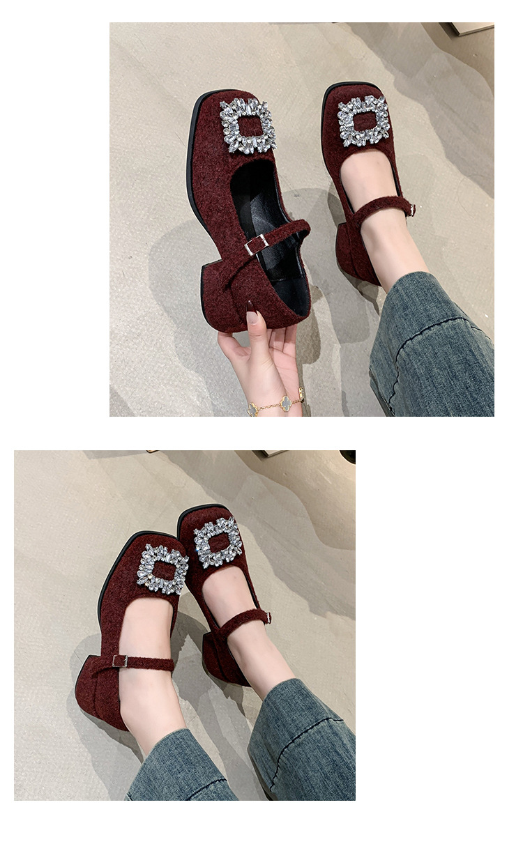 새로운 저녁 바람 저녁 우아한 봄 요정 메리 제인 신발 프렌치 레트로 라인스톤 싱글 신발 여성 한국 스타일 하이힐 청키 힐