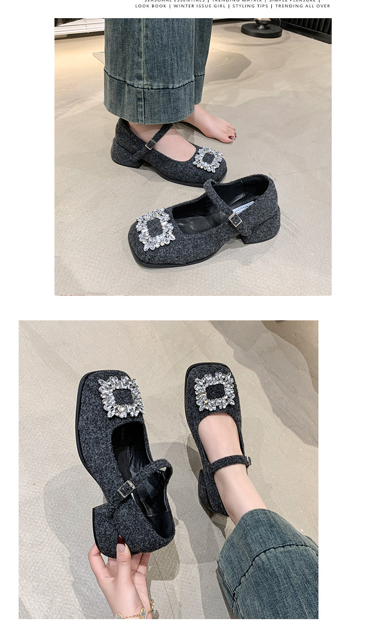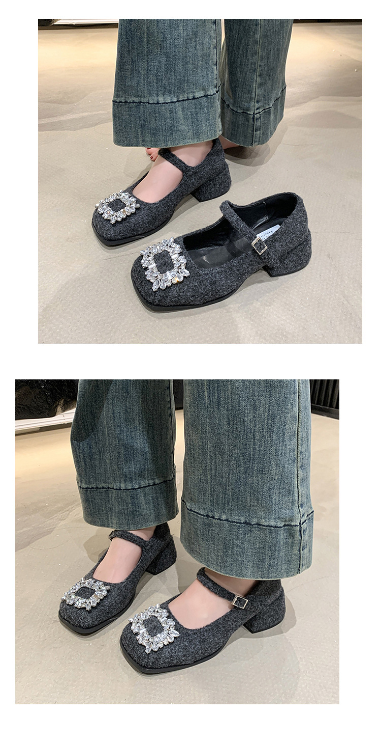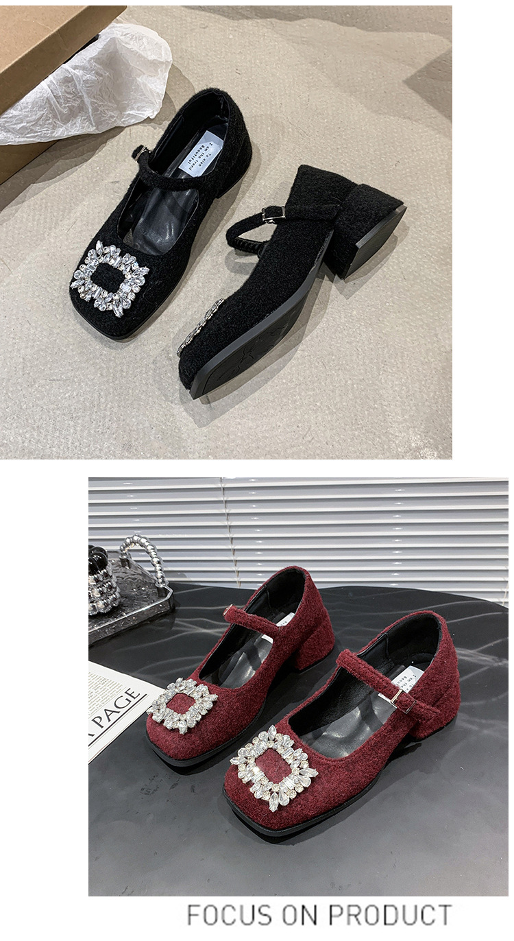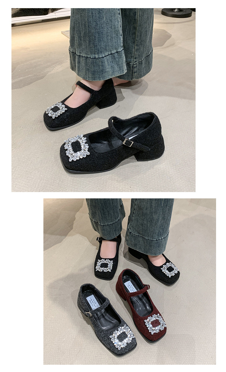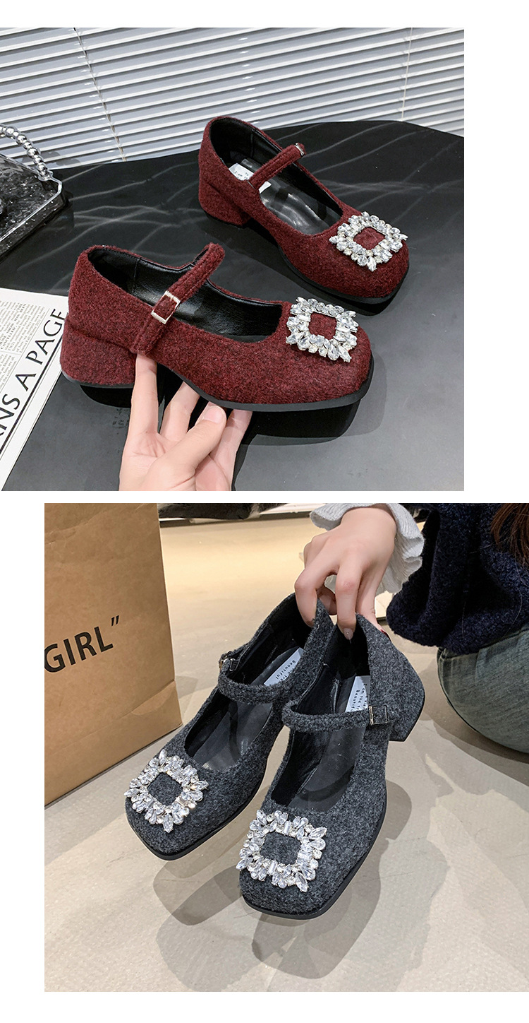 새로운 저녁 바람 저녁 우아한 봄 요정 메리 제인 신발 프렌치 레트로 라인스톤 싱글 신발 여성 한국 스타일 하이힐 청키 힐