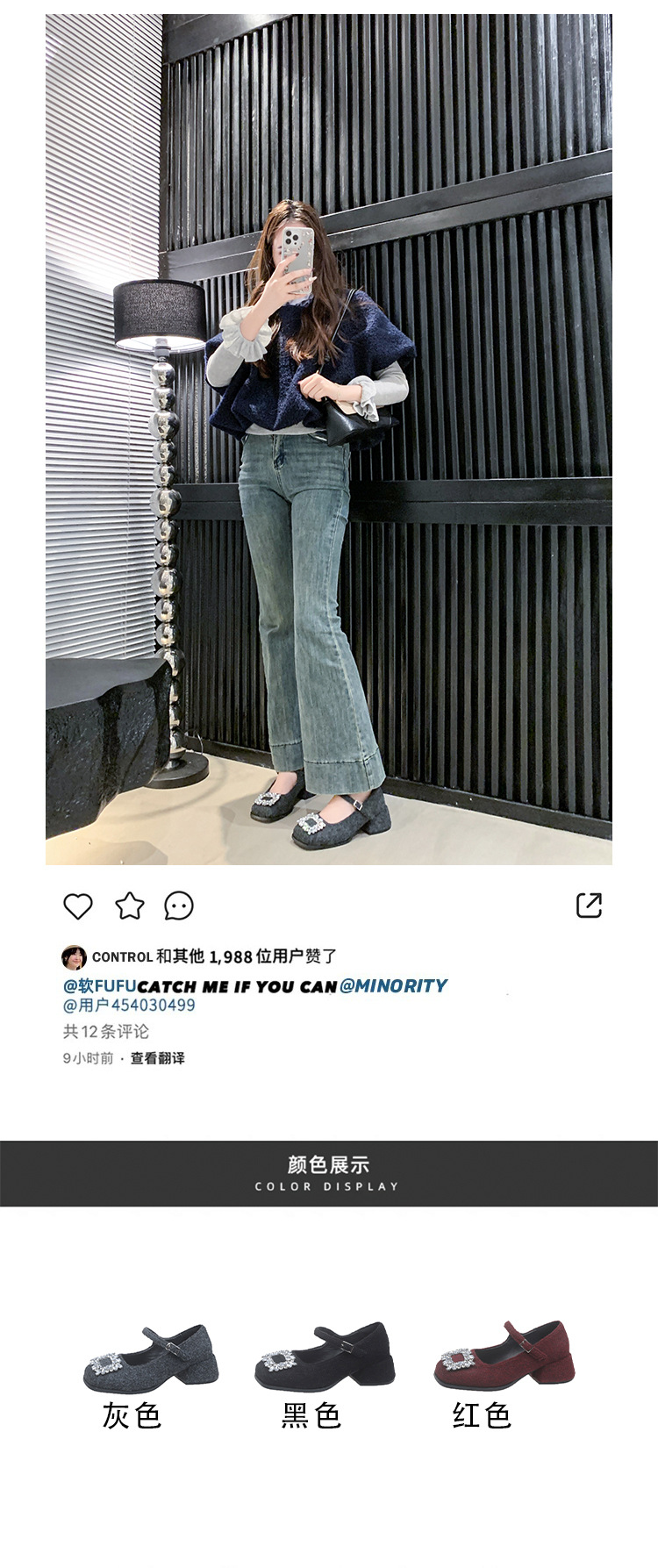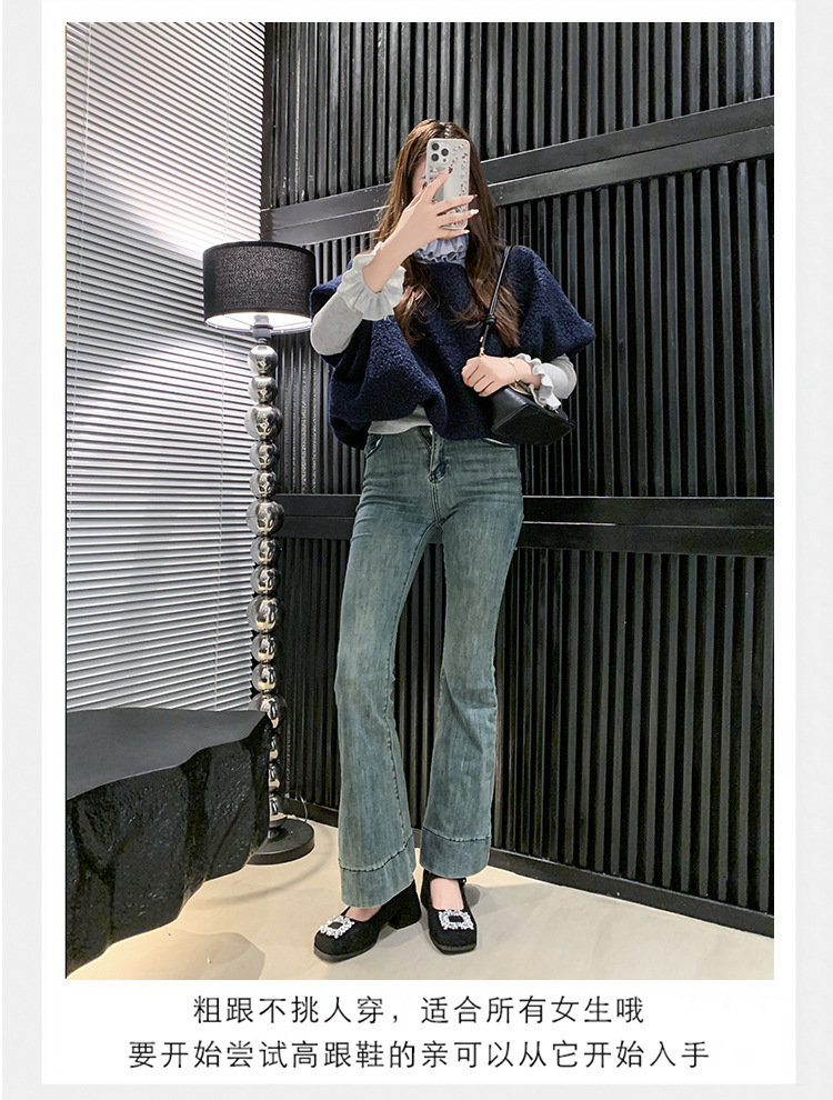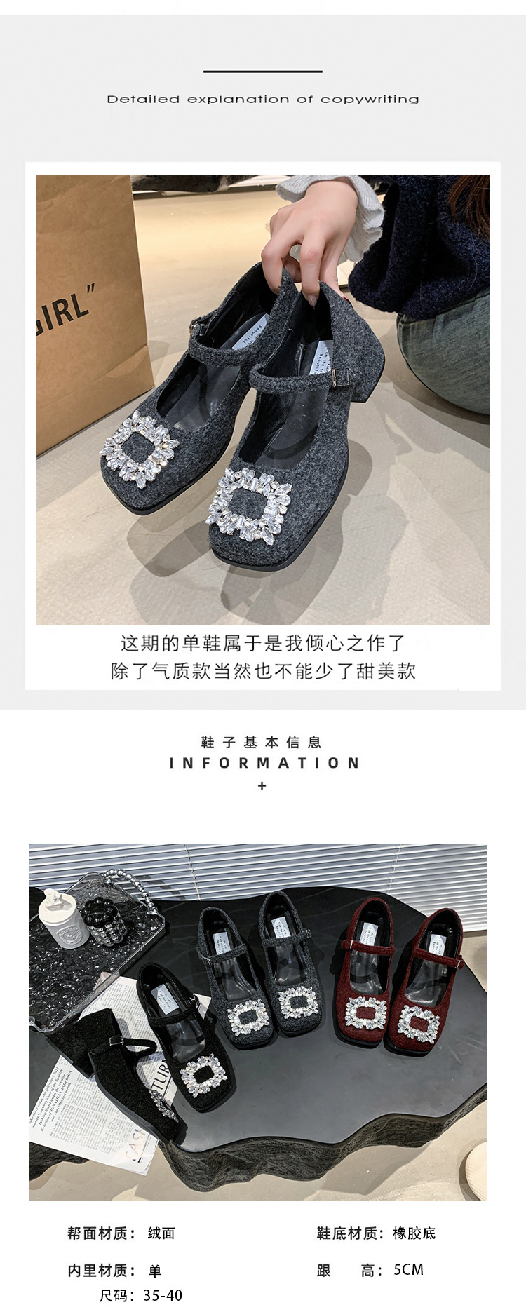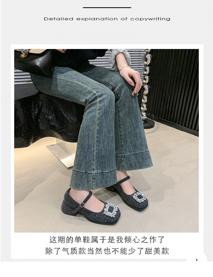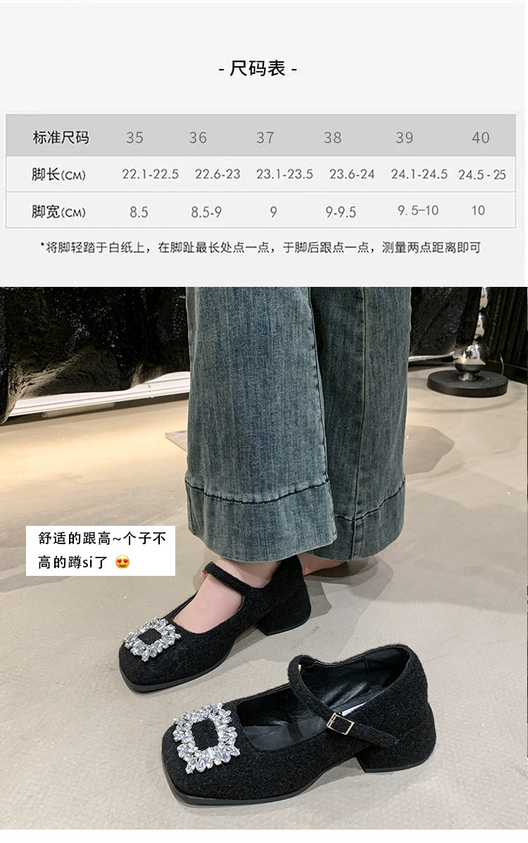 새로운 저녁 바람 저녁 우아한 봄 요정 메리 제인 신발 프렌치 레트로 라인스톤 싱글 신발 여성 한국 스타일 하이힐 청키 힐스토어 가기