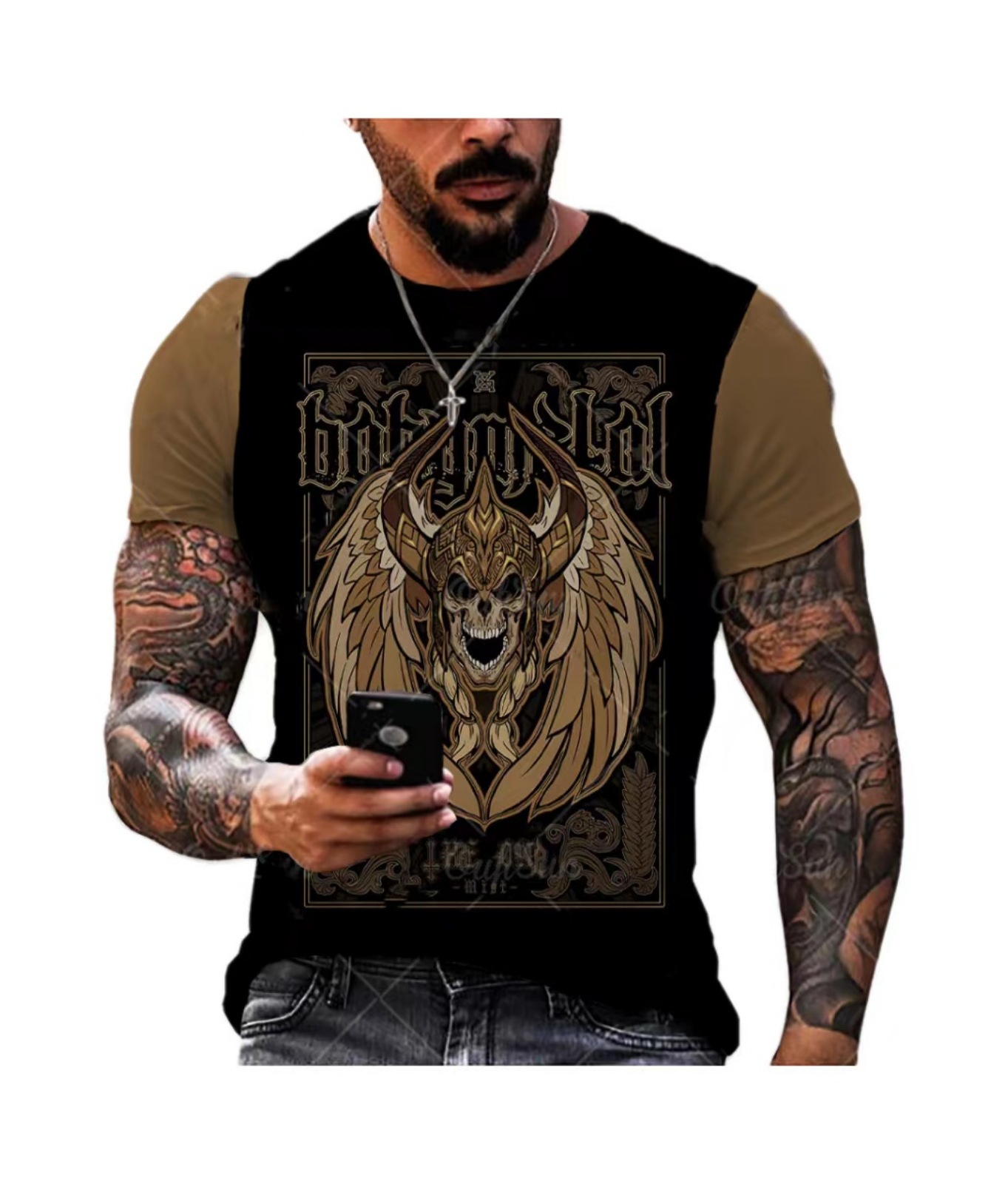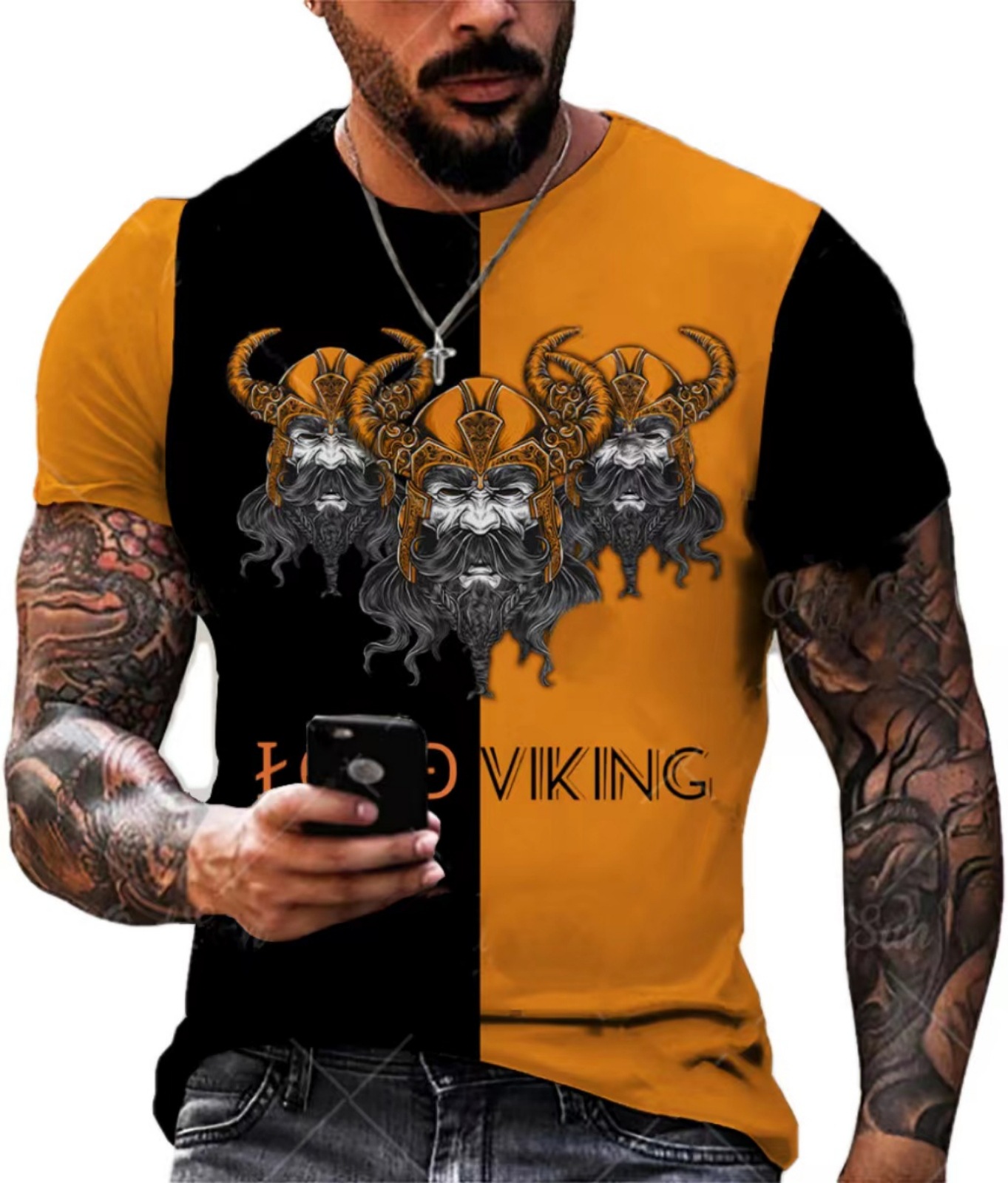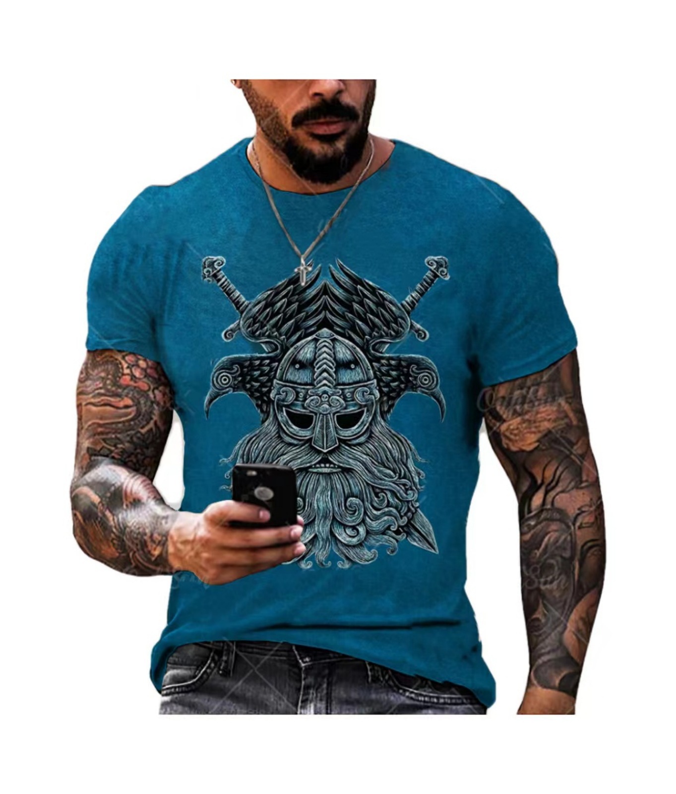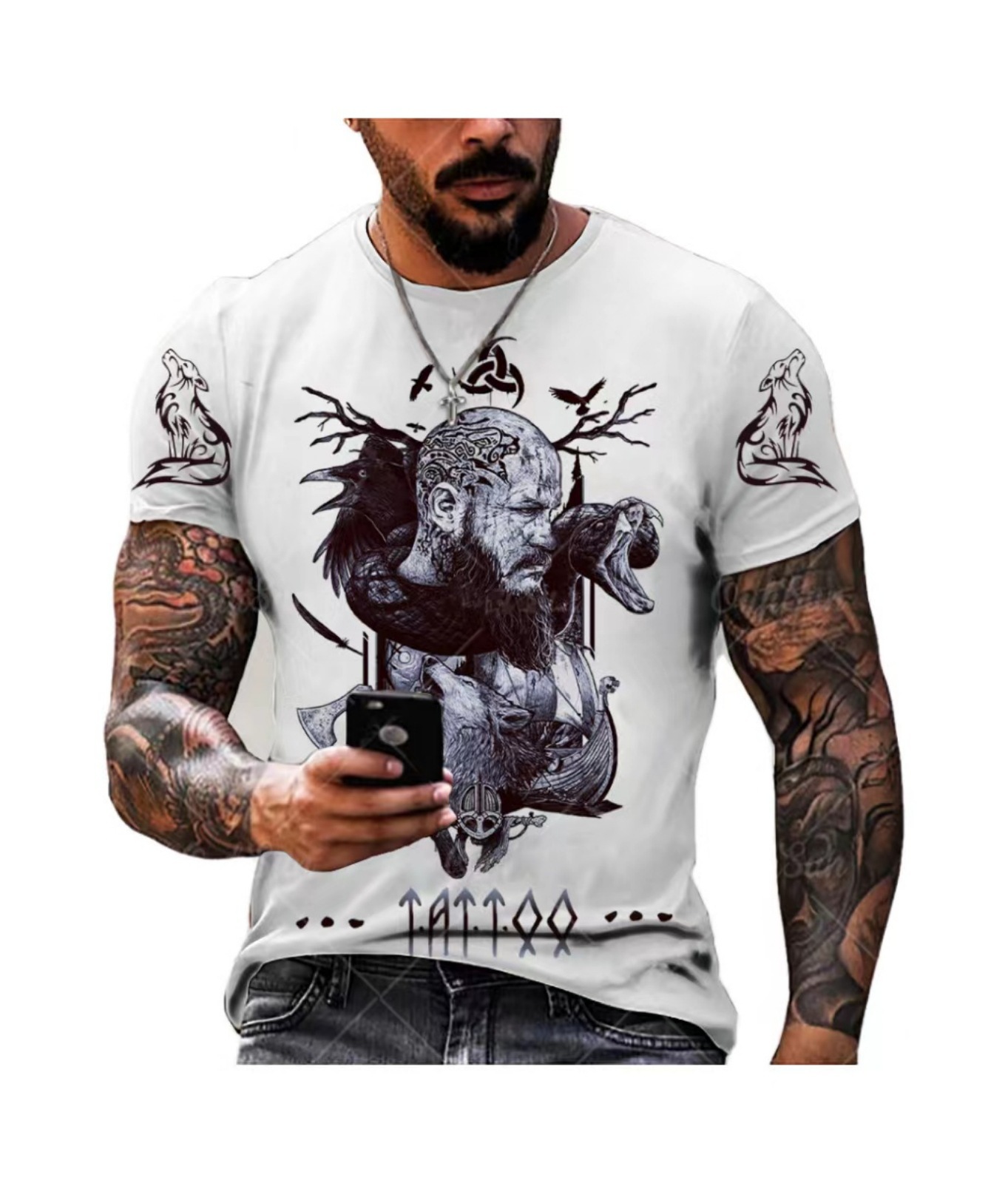 여름 유럽과 미국의 국경 새로운 남성 디지털 인쇄 동물 패턴 남성 캐주얼 라운드 넥 티셔츠