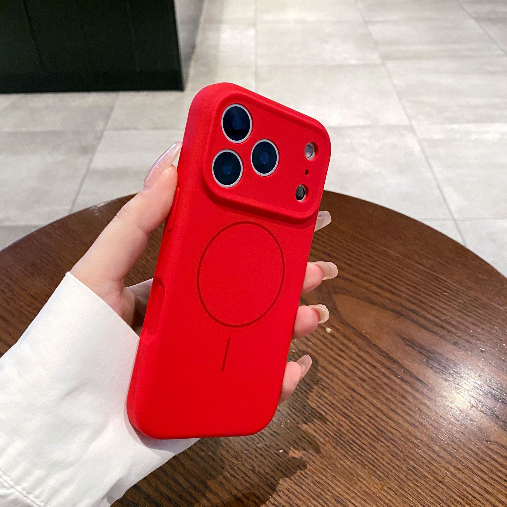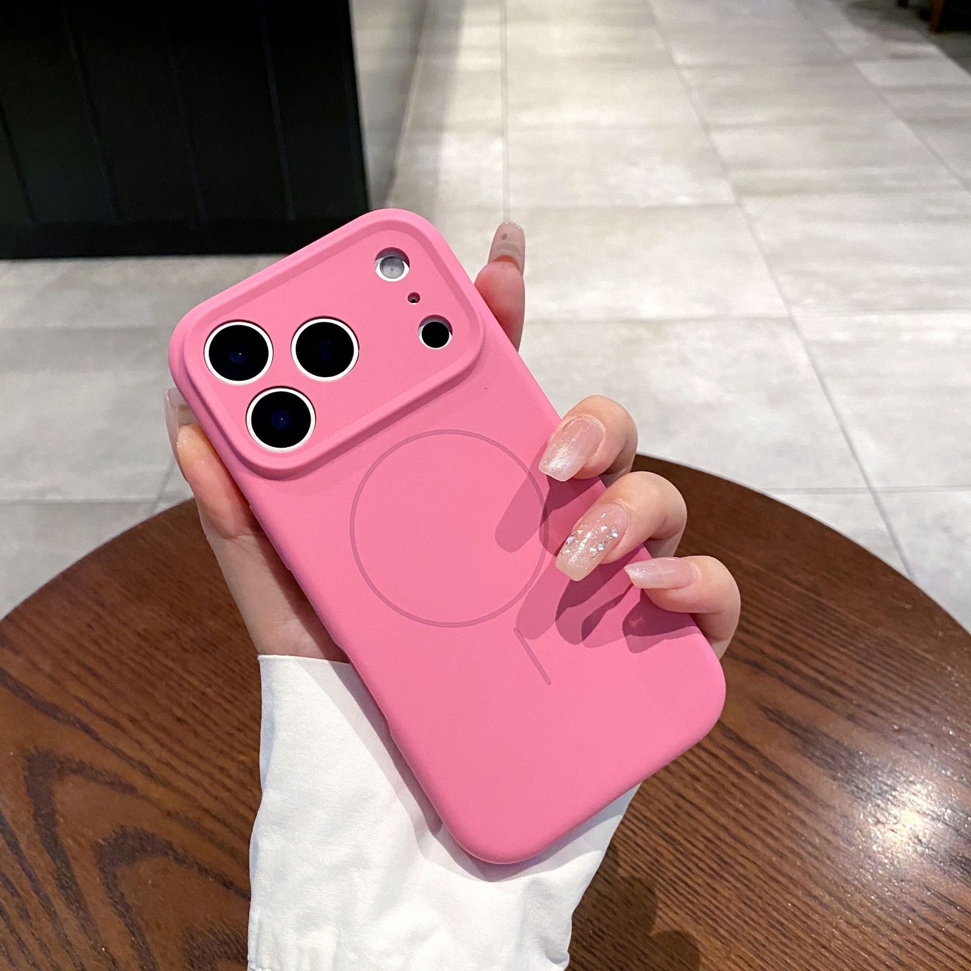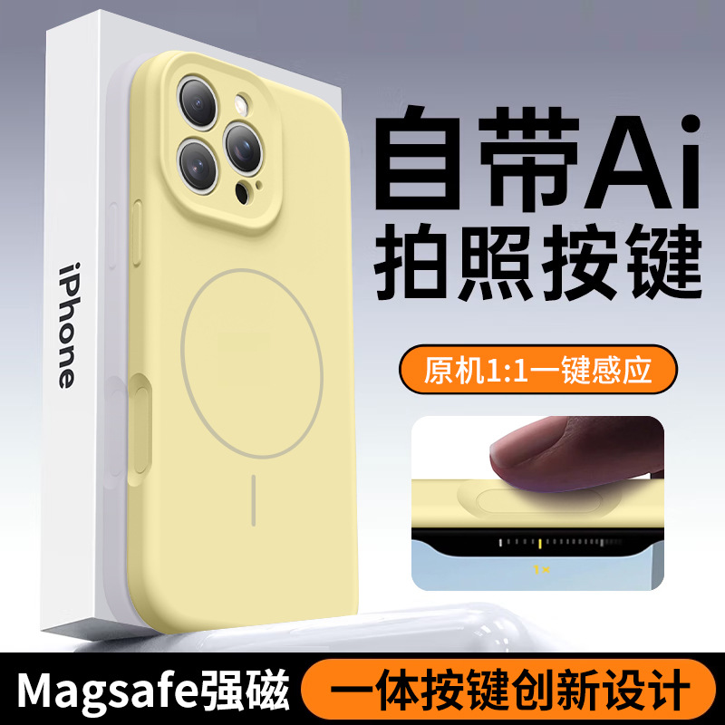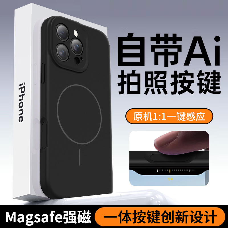 아이폰16프로맥스용 순색 무광 케이스 애플17 터치 AI 버튼 자석 흡착 액체 실리콘