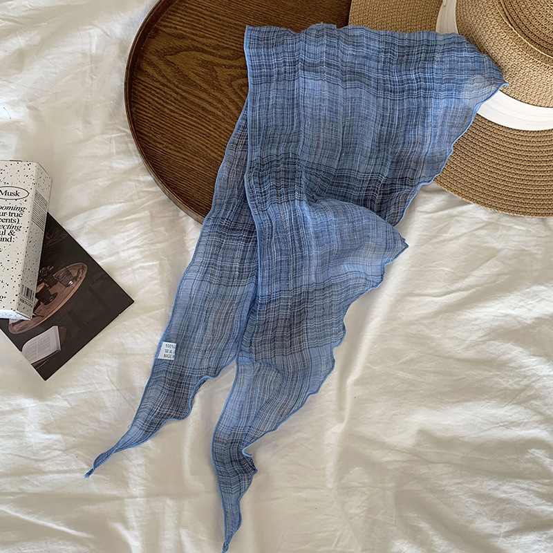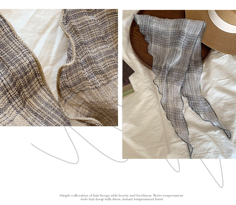 삼각형 스카프 여성 한국어 버전의 일본 순수 린넨 격자 무늬 성격 조커 작은 스카프 머리 스카프 헤어 벨트 스카프 도매