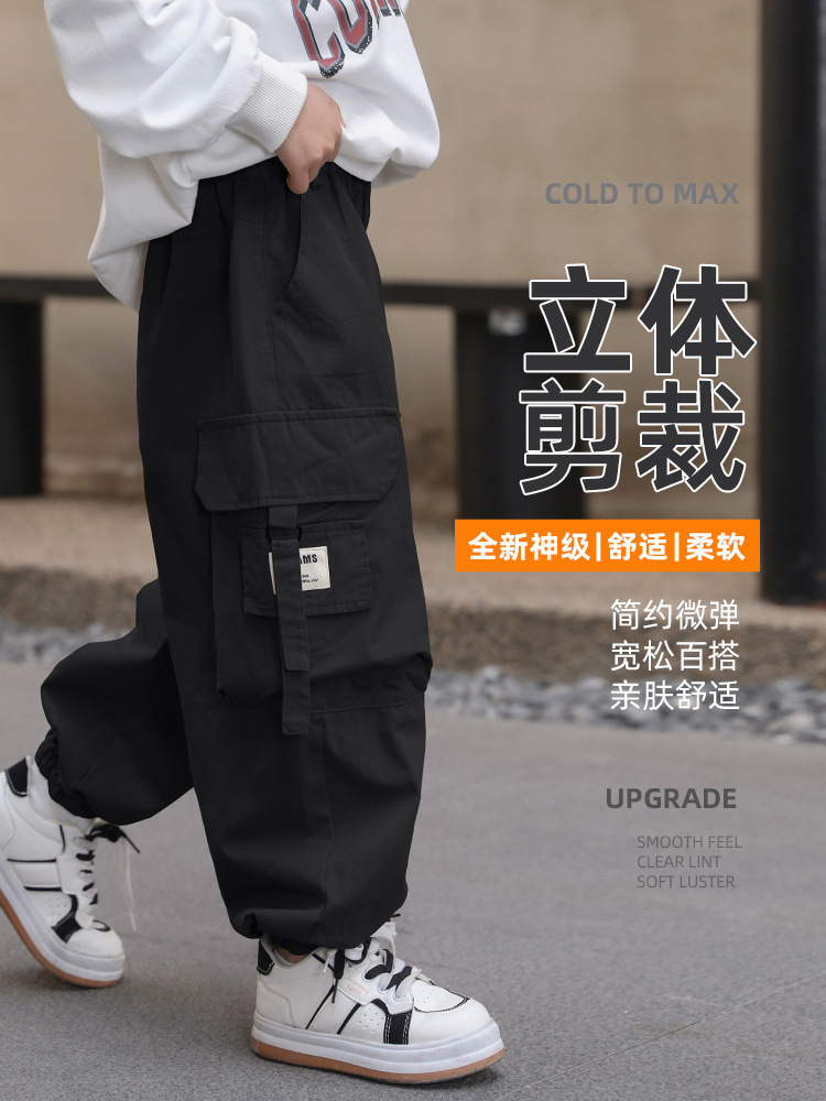소년 쿠션 바지 봄과 가을 2025 새로운 어린이 가을 더피 잘 생긴 바지 큰 소년 캐주얼 바지