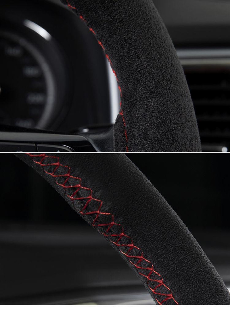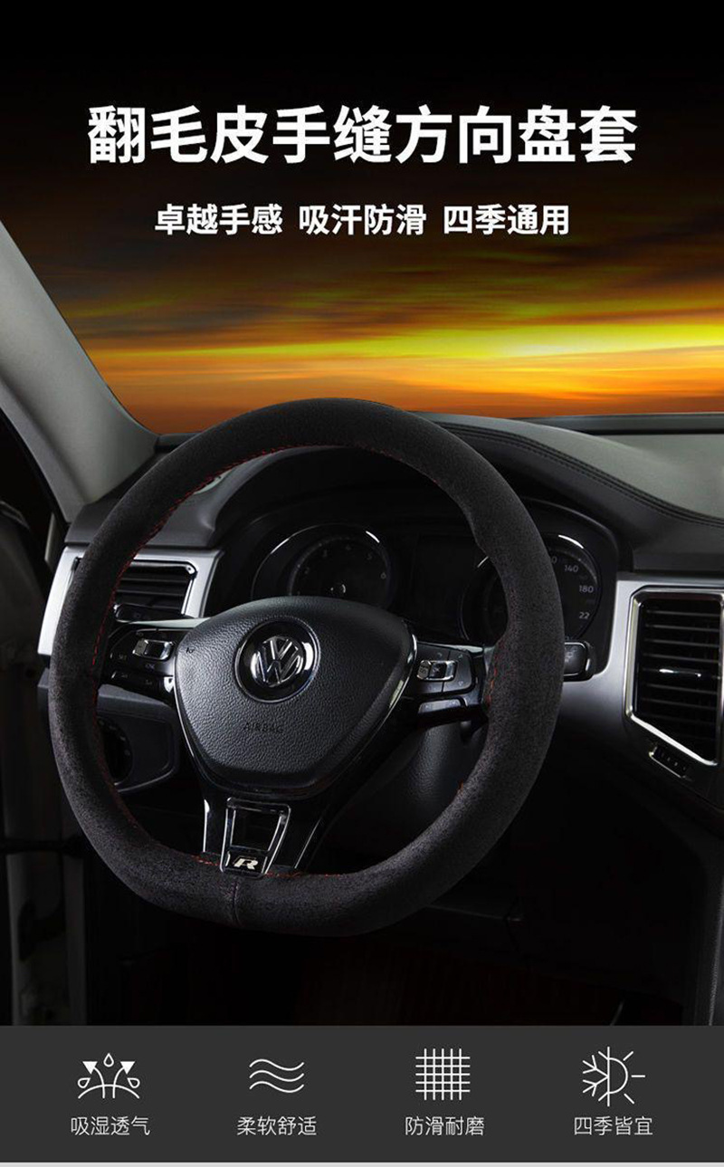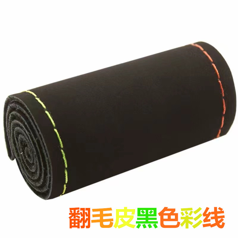 모피 핸드 스티치 스티어링 휠 커버 4 면 탄성 헤어 터닝 카 핸들 커버 사계절 유니버설 미끄럼 방지 가죽 커버