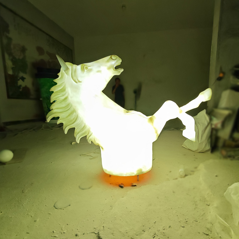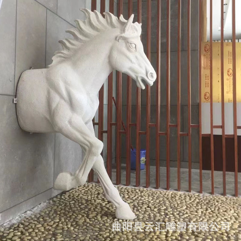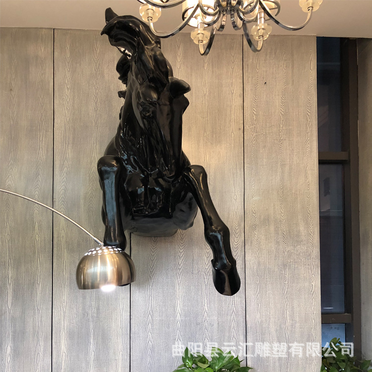 유리섬유 반신 말머리 조각상, 창의적인 벽을 통과하는 말, 관광지, 골목구멍, 호텔 로비 장식품