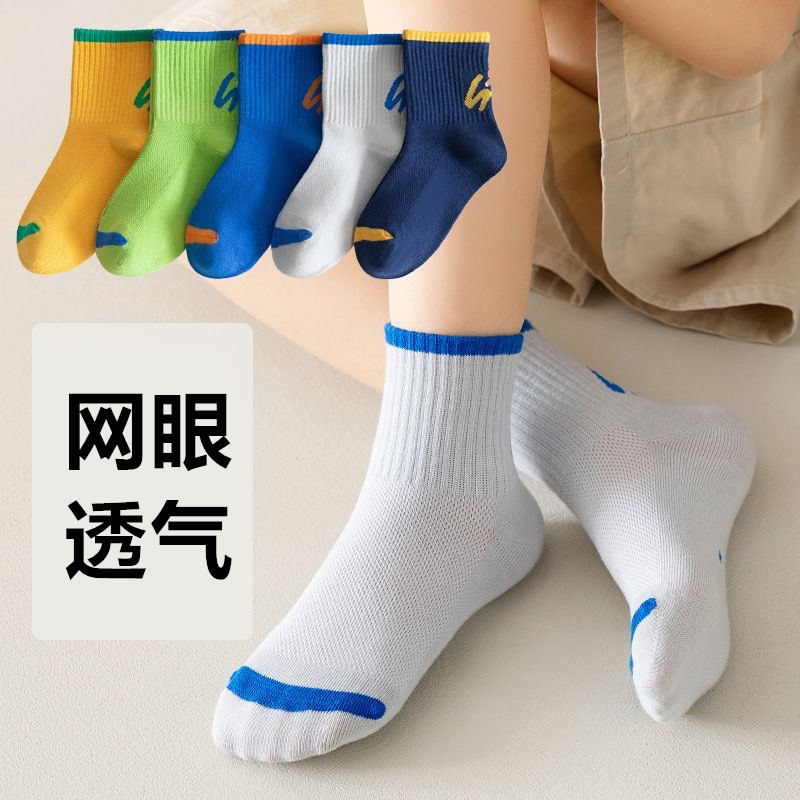어린이 양말 봄과 여름 얇은 대형 어린이 메쉬 어린이 통기성 소년 스포츠 여름 땀 흡수 미드 튜브 양말