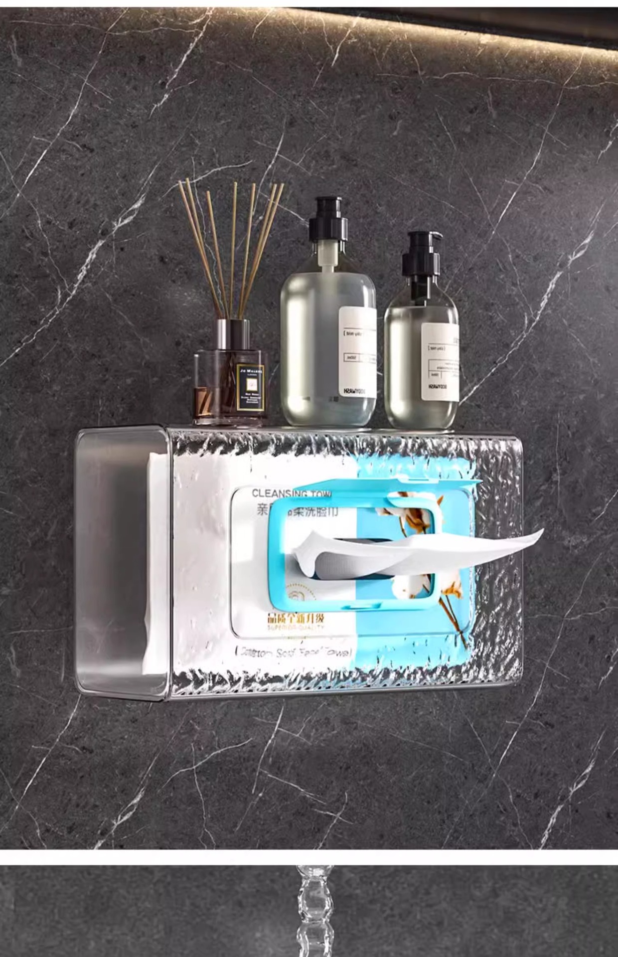 투명한 주방 물티슈 보관 상자 펀치 무료 다기능 종이 그리기 얼굴 수건 벽 거꾸로 보관 랙 박스