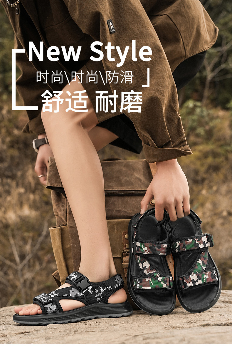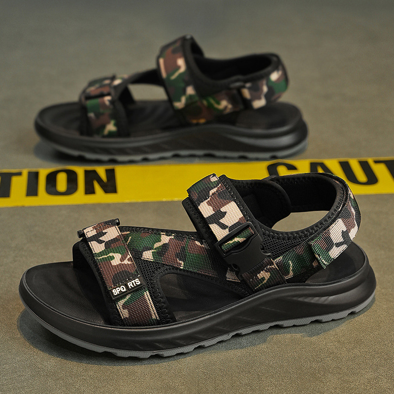 슬리퍼 남성용 트렌디 한 신발 2025 새로운 도착 슬라이드 의류 및 듀얼 사용 비치 패션 올매치 위장 샌들 및 슬리퍼
