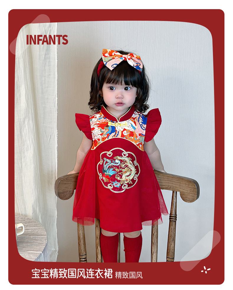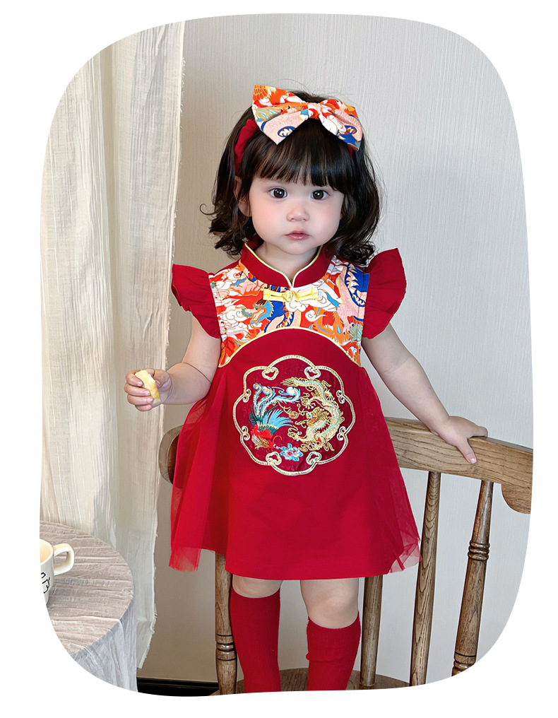 2025 여름 새 스타일 한 살짜리 아기 소녀를위한 선물 새로운 중국 스타일 옷 5230 여성을위한 자수 공주 드레스스토어 가기
