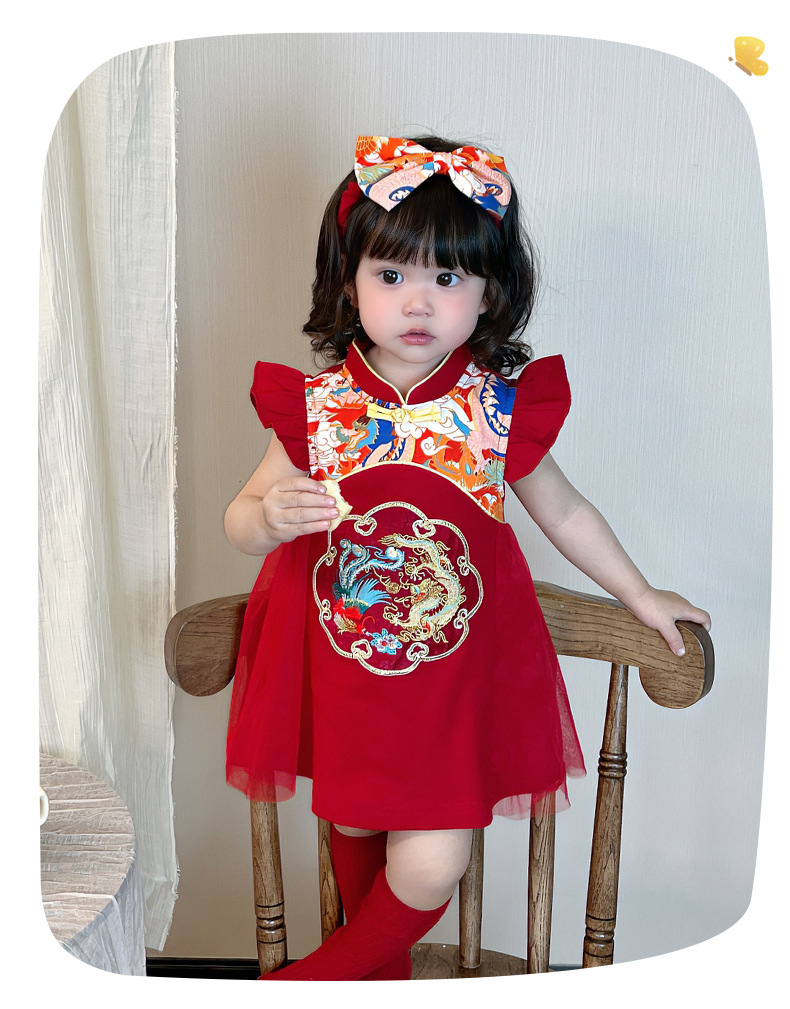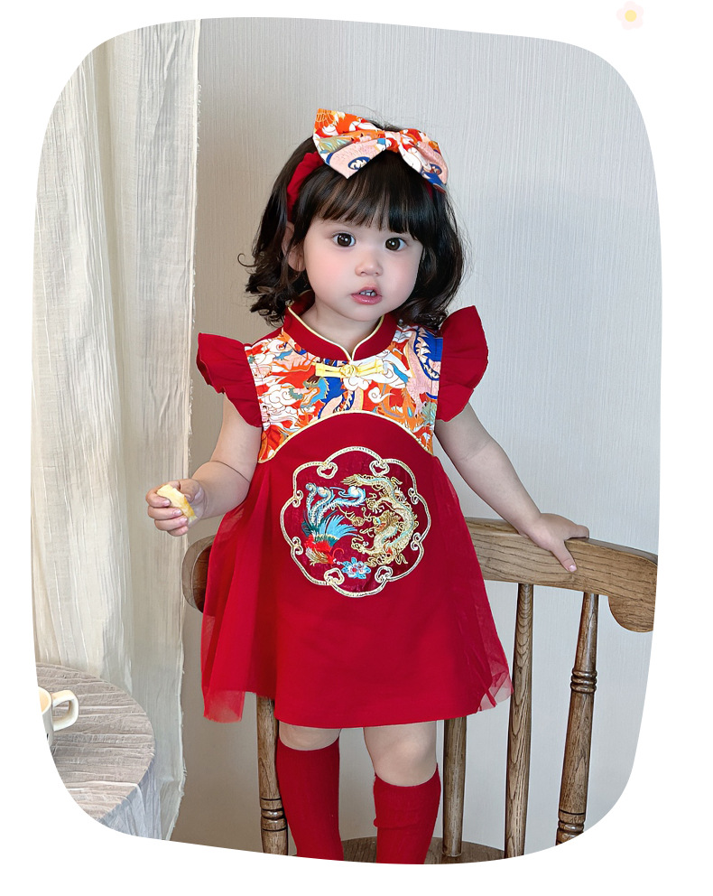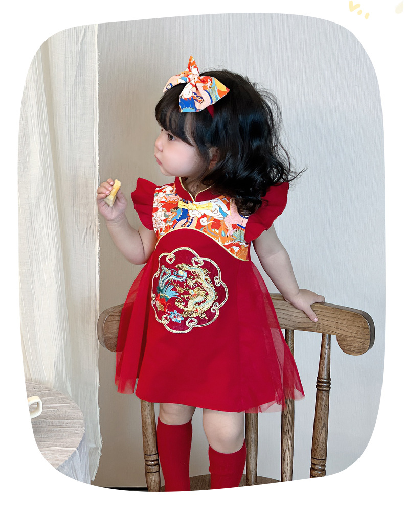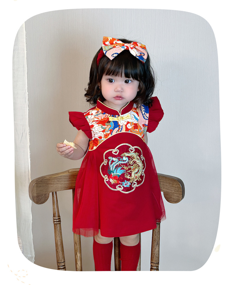 2025 여름 새 스타일 한 살짜리 아기 소녀를위한 선물 새로운 중국 스타일 옷 5230 여성을위한 자수 공주 드레스