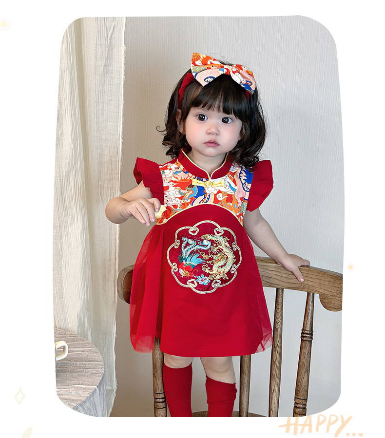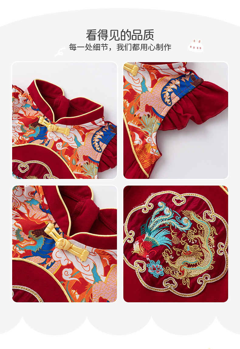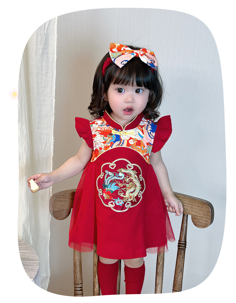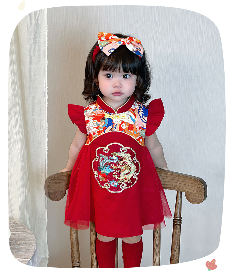 2025 여름 새 스타일 한 살짜리 아기 소녀를위한 선물 새로운 중국 스타일 옷 5230 여성을위한 자수 공주 드레스