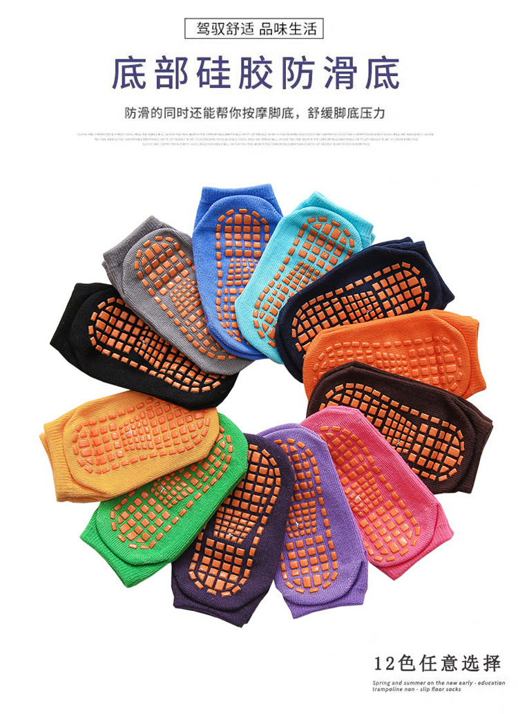 미끄럼 방지 바닥 양말, 특수 트램폴린 양말, 어린이 조기 교육 성인 실내 놀이터 아기 등산 매트 신발 및 양말 커버스토어 가기