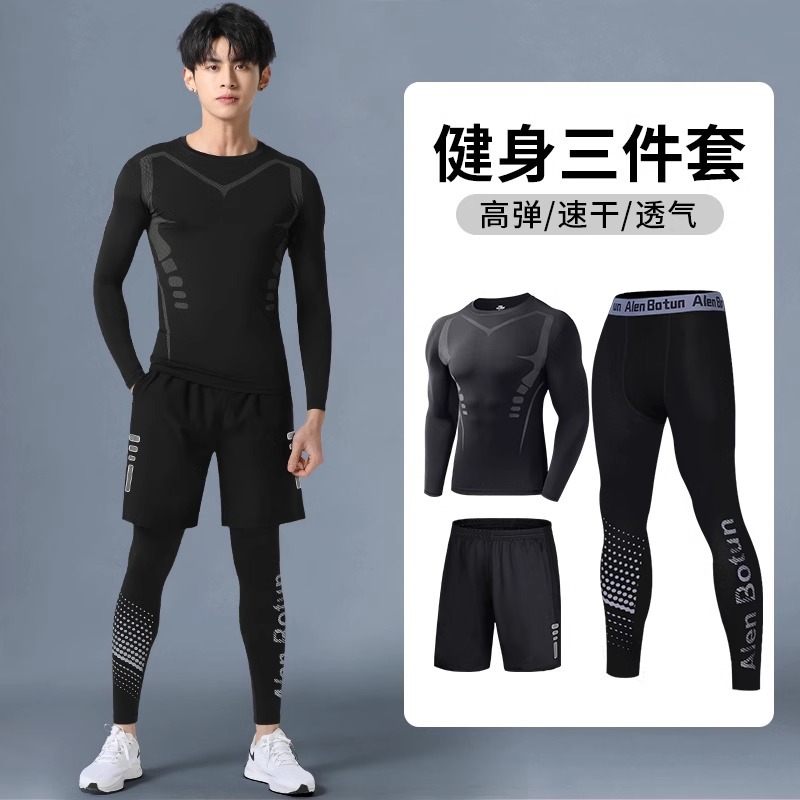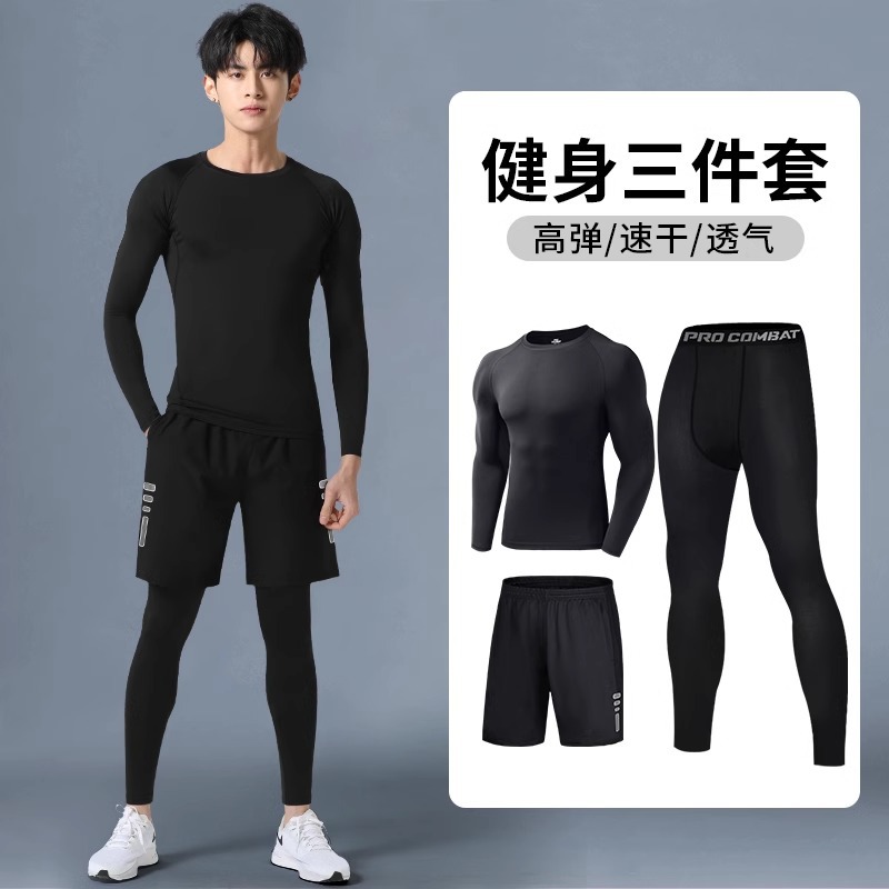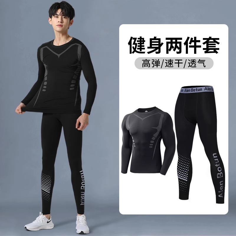 피트니스 의류 스포츠 타이츠 남자 가을과 겨울베이스 빠른 건조 옷 압축 높은 탄성 훈련 바지 농구 러닝 세트스토어 가기