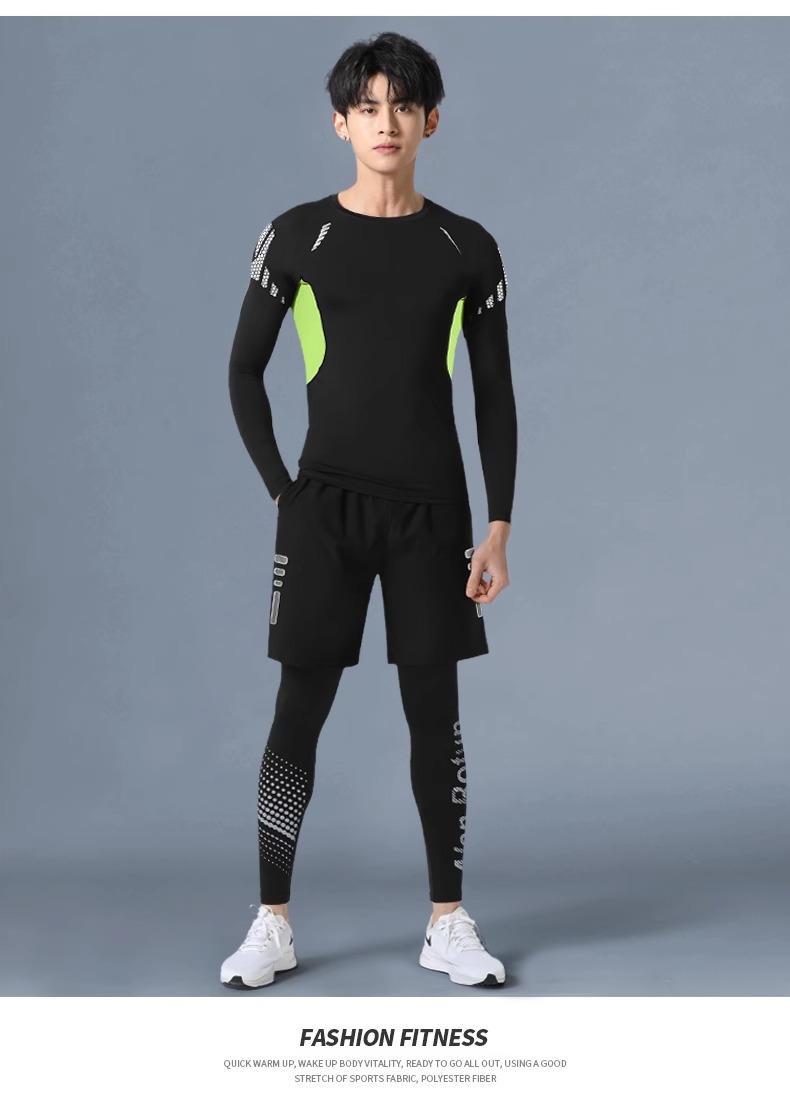 피트니스 의류 스포츠 타이츠 남자 가을과 겨울베이스 빠른 건조 옷 압축 높은 탄성 훈련 바지 농구 러닝 세트