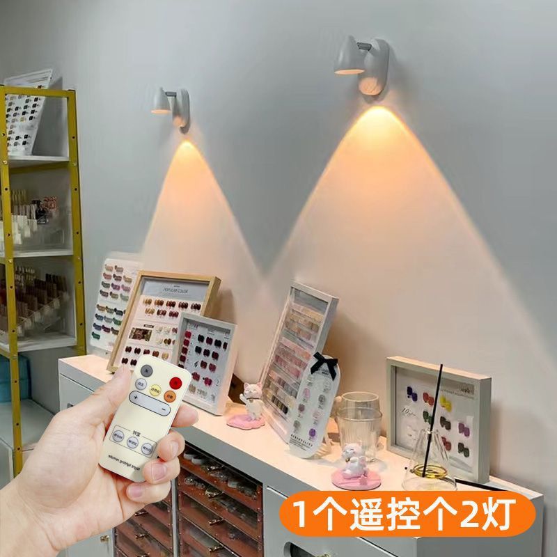 무선 원격 제어 충전 스포트라이트 배선-무료 펀치-배경 벽 램프 침대 옆 홈 입구 유도 자기 접착