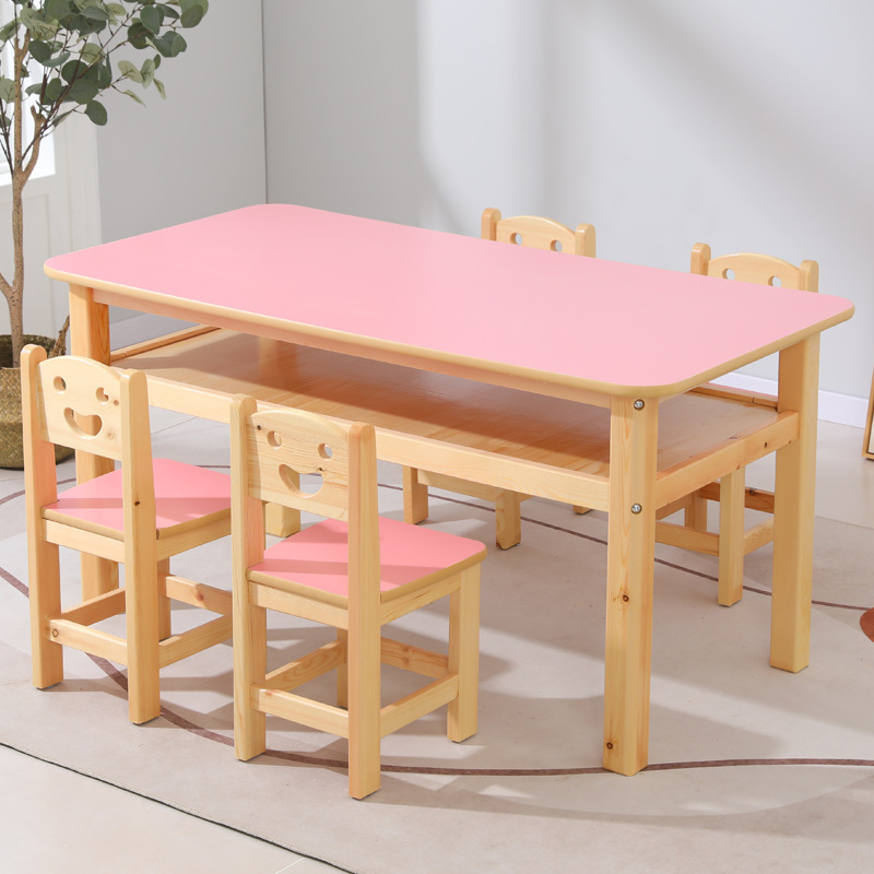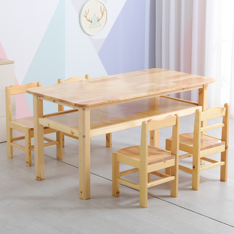 공장 직접 판매 어린이 단단한 나무 연구 테이블 더블 레이어 대용량 서랍 저장 유치원 초등 및 중등 학교 책상 및 의자스토어 가기