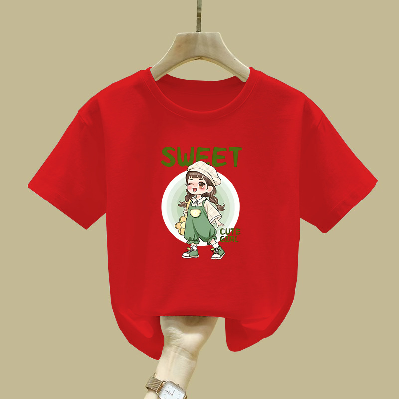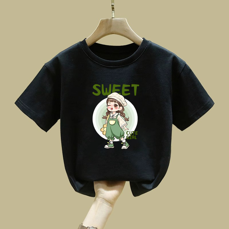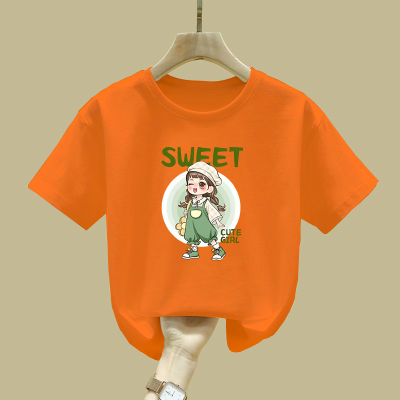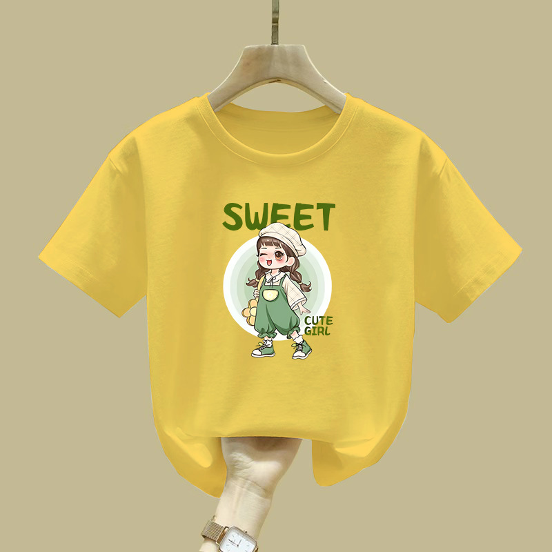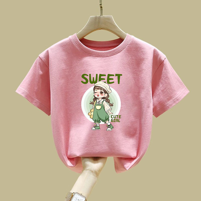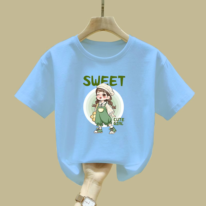 2528 # 반팔 여자 티셔츠 면 여름 새로운 어린이 승무원 목 반팔 티셔츠 중형 및 대형 어린이 서양식 옷스토어 가기