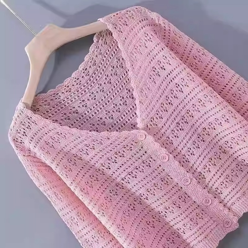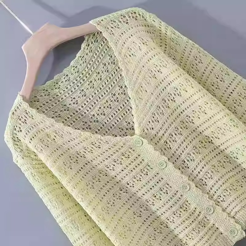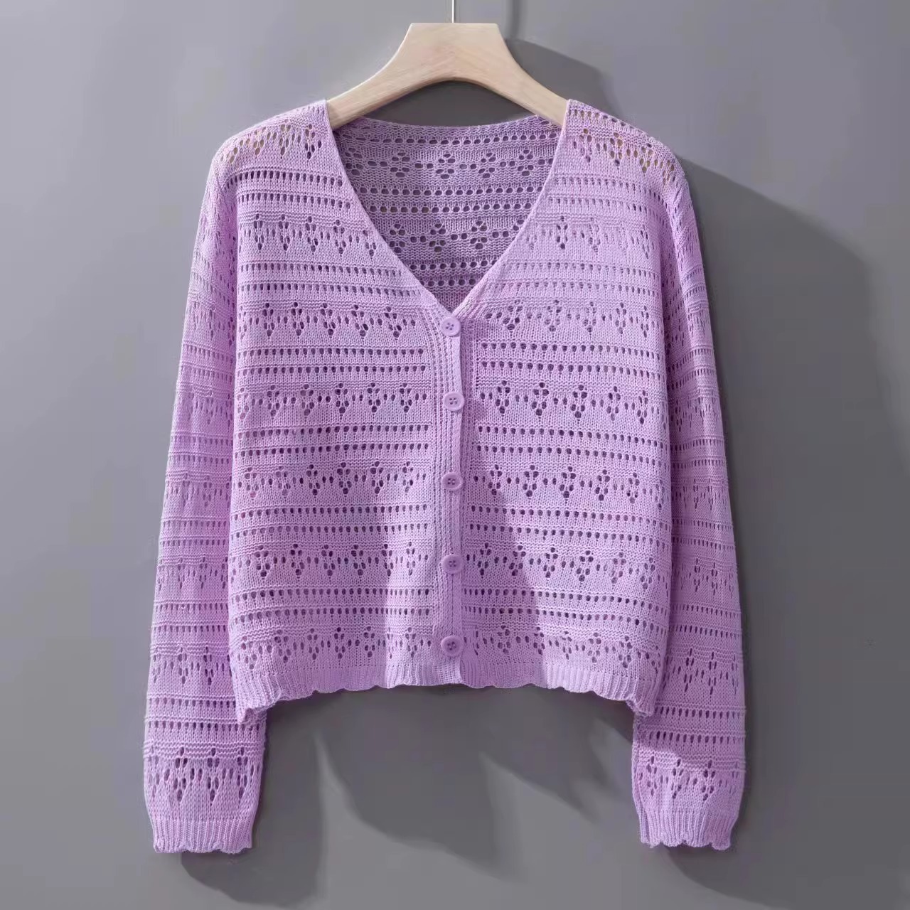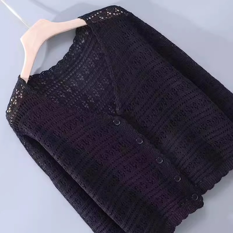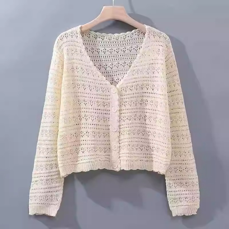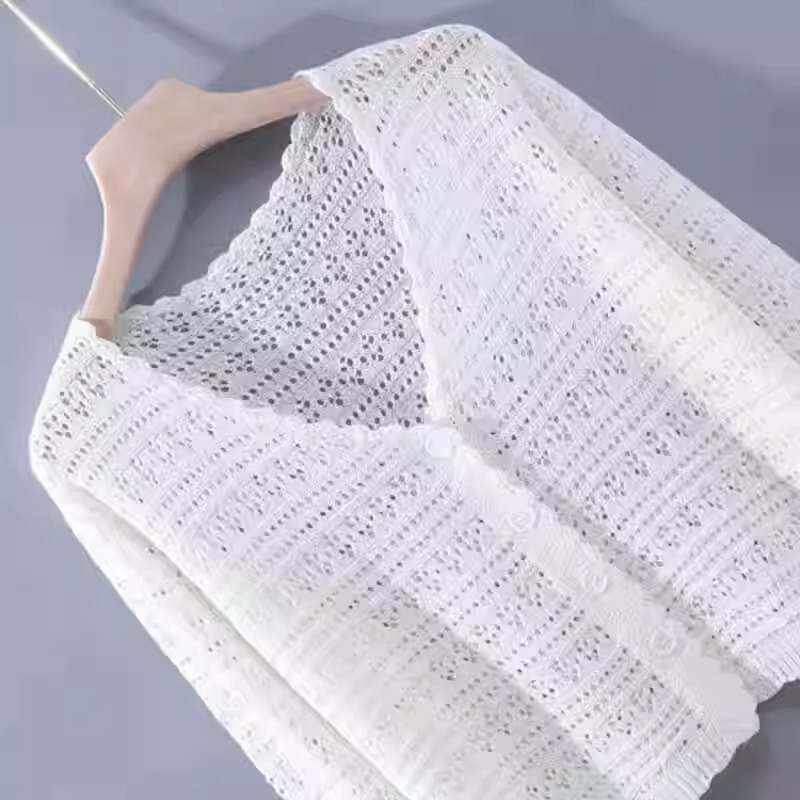 화이트 할로우 니트 카디건 여성용 얇은 긴팔 아이스 실크 숄 외부 스트랩 스커트 에어컨 셔츠 탑스토어 가기
