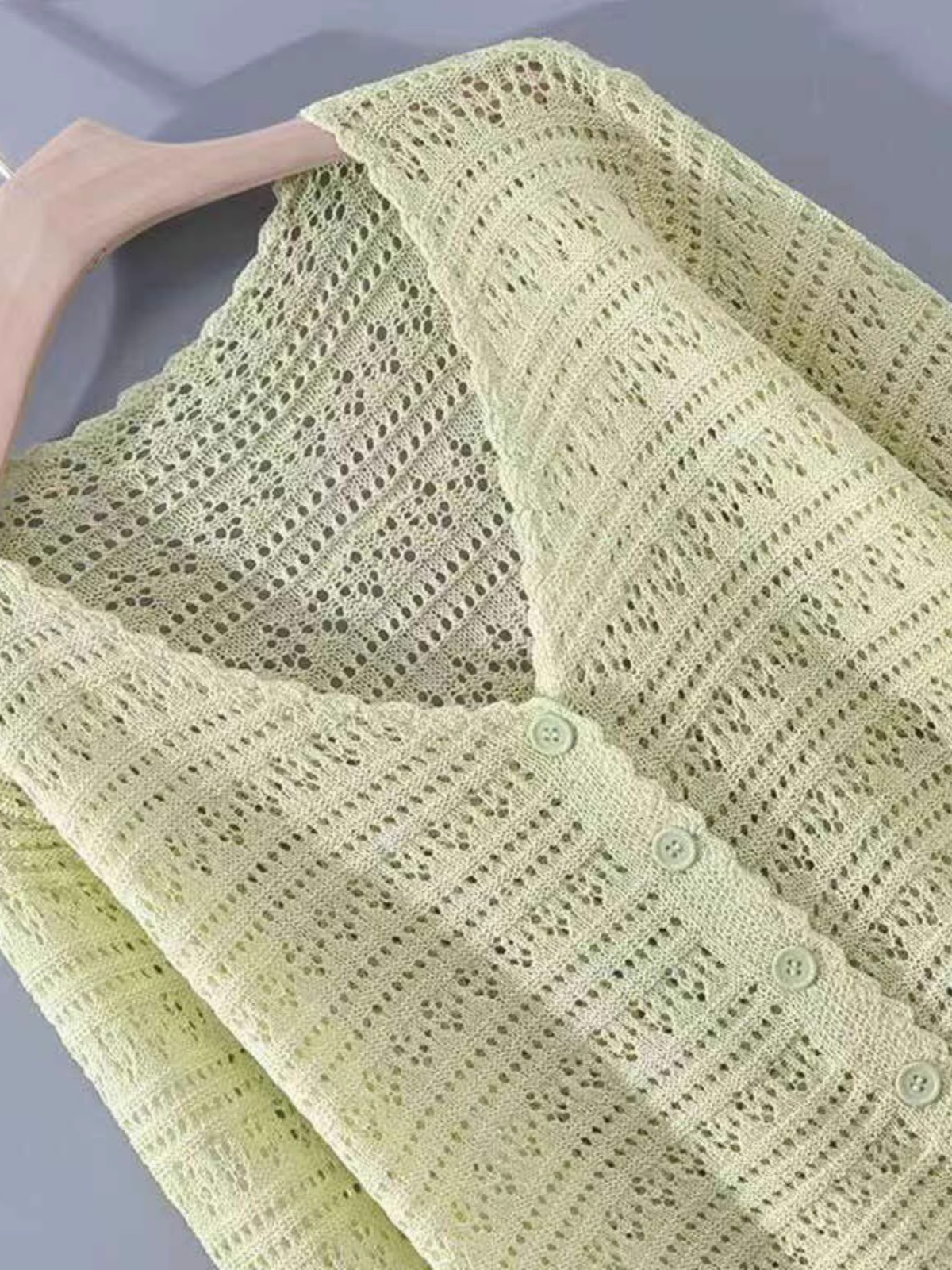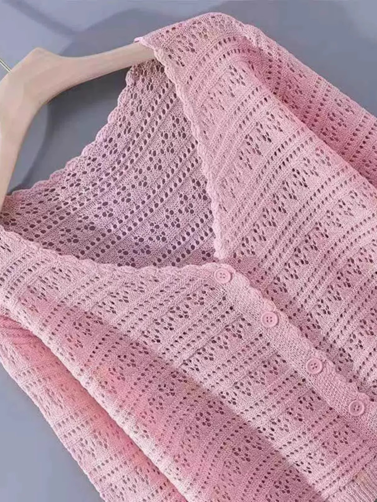 화이트 할로우 니트 카디건 여성용 얇은 긴팔 아이스 실크 숄 외부 스트랩 스커트 에어컨 셔츠 탑