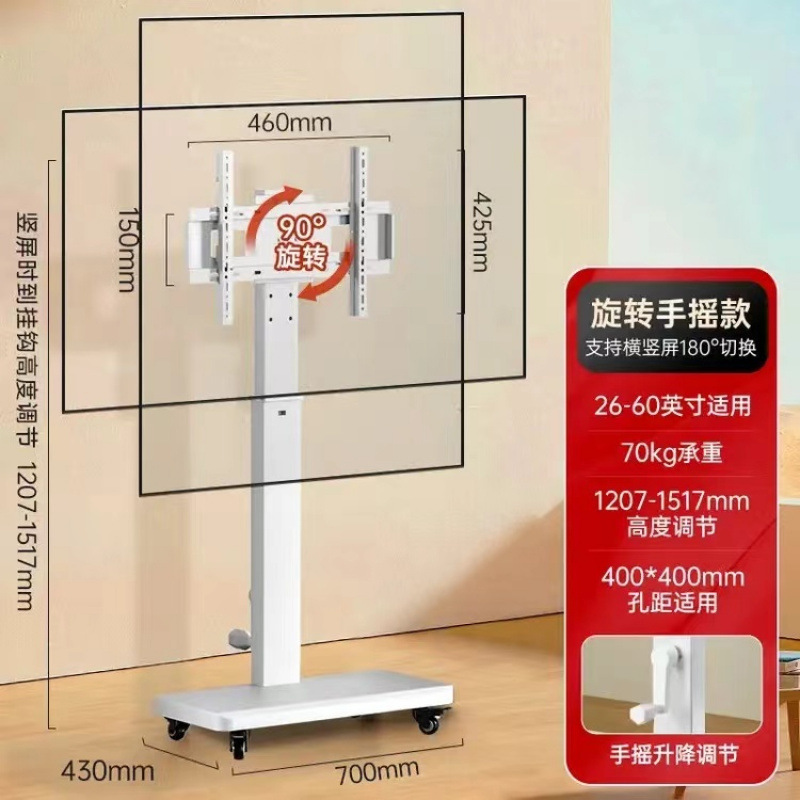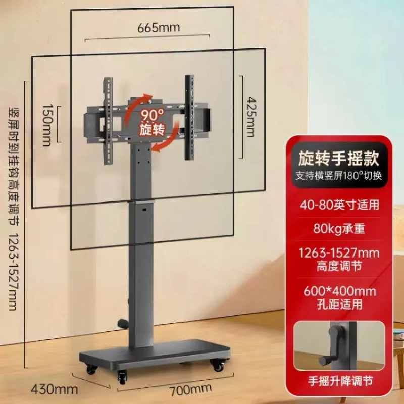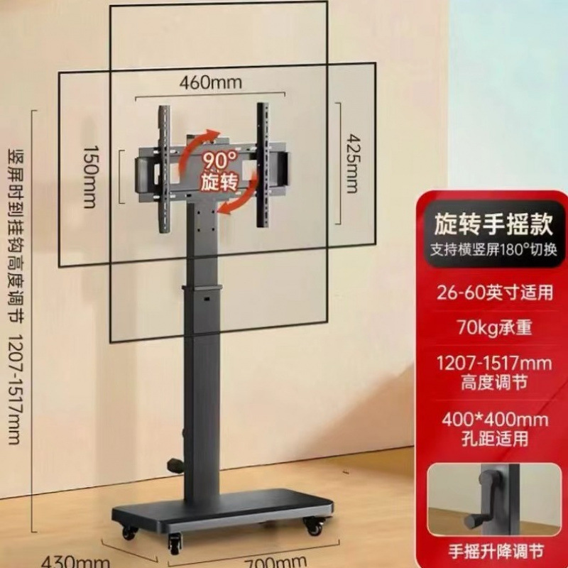 TV 브래킷 수평 및 수직 화면 회전 라이브 방송 랙 핸드 크랭크 리프팅 카트 바퀴 달린 모바일 플로어 스탠딩 랙 유니버설