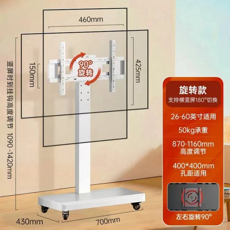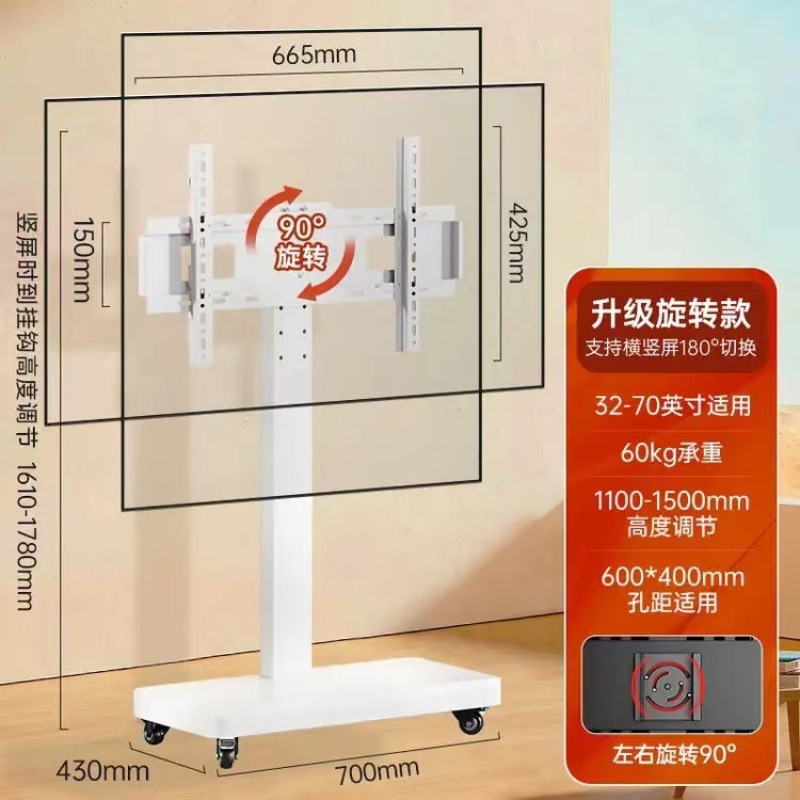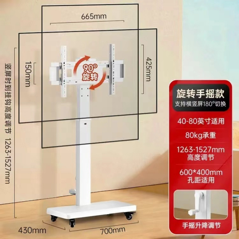 TV 브래킷 수평 및 수직 화면 회전 라이브 방송 랙 핸드 크랭크 리프팅 카트 바퀴 달린 모바일 플로어 스탠딩 랙 유니버설스토어 가기