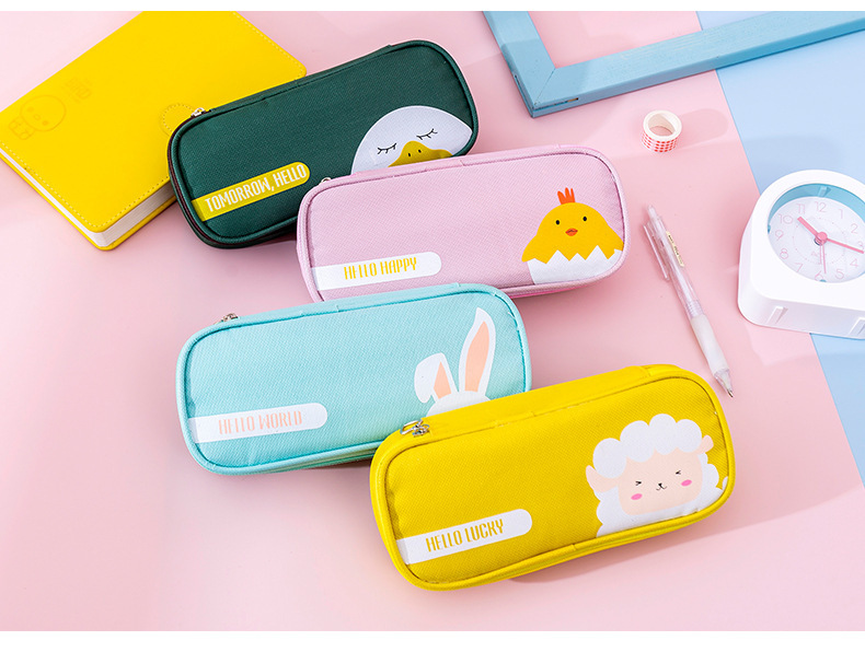 와우 사용자 정의 간단한 만화 동물 연필 가방 사용자 정의 로고 대용량 중국 문구 가방 일본 스타일 높은 가치 연필 가방스토어 가기