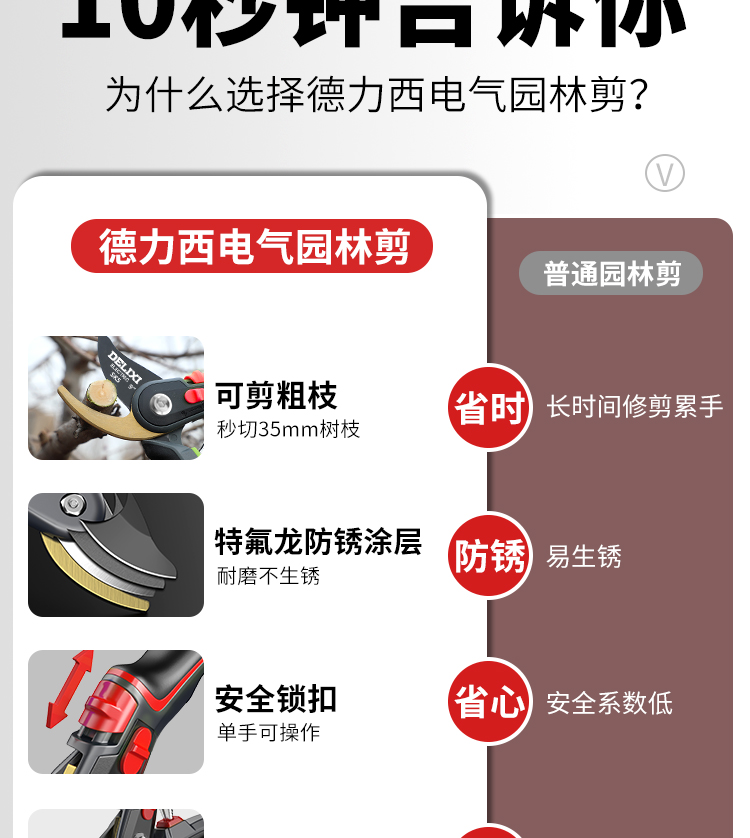 Delixi 전기 가지 가지 치기 지점 가위 가지 치기 정원 가위 과일 나무 꽃 접목 가위스토어 가기