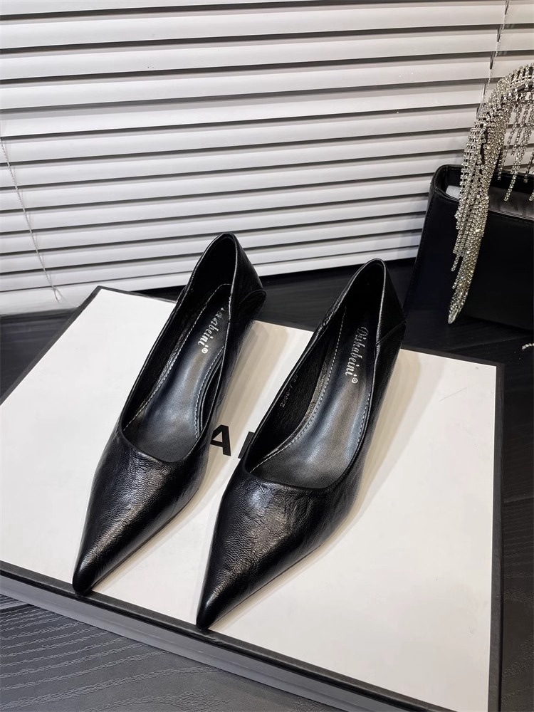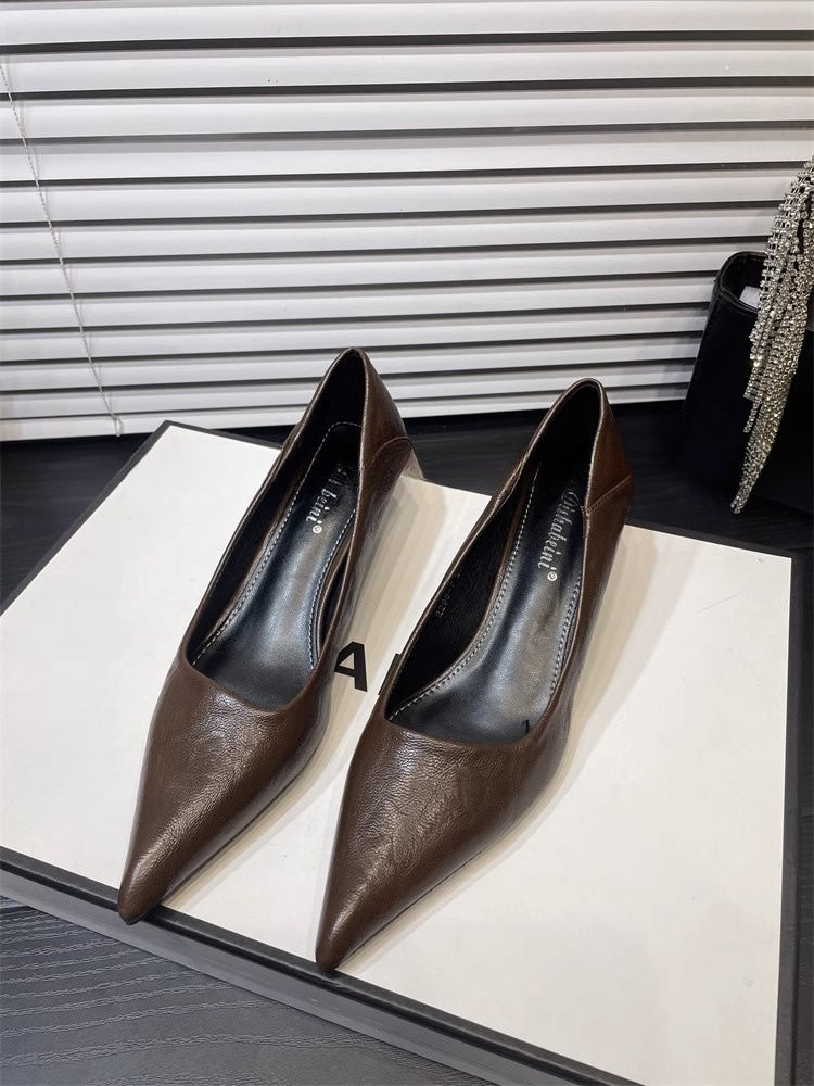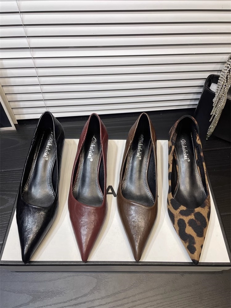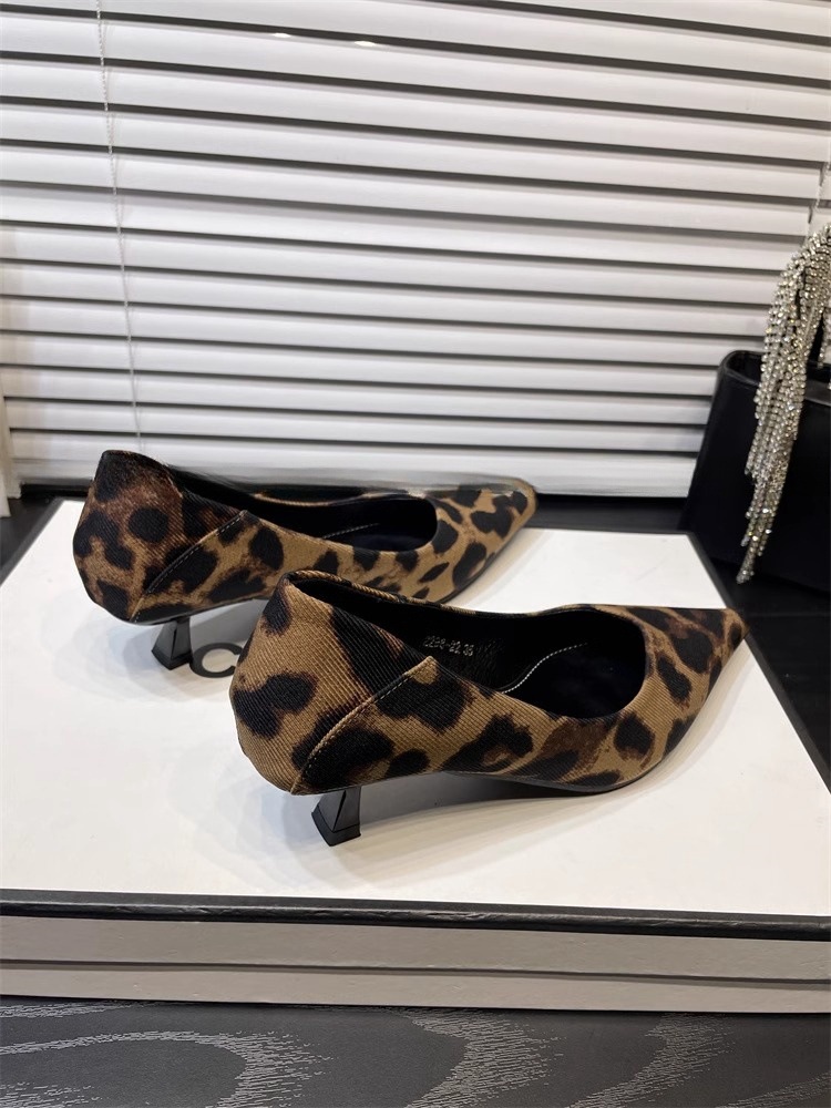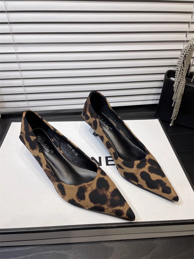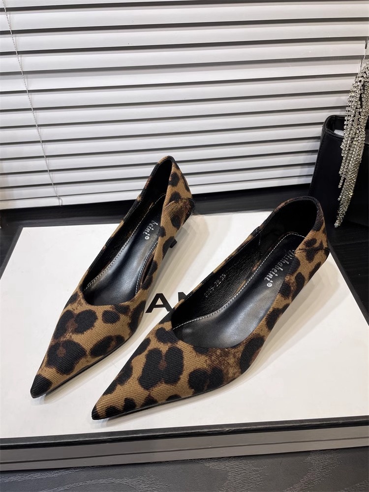 2025 가을 겨울 새로운 포인팅 얕은 하이힐 레오파드 무늬 패션 올매치 우아한 통근 로우 힐 키튼 다큐멘터리 신발스토어 가기