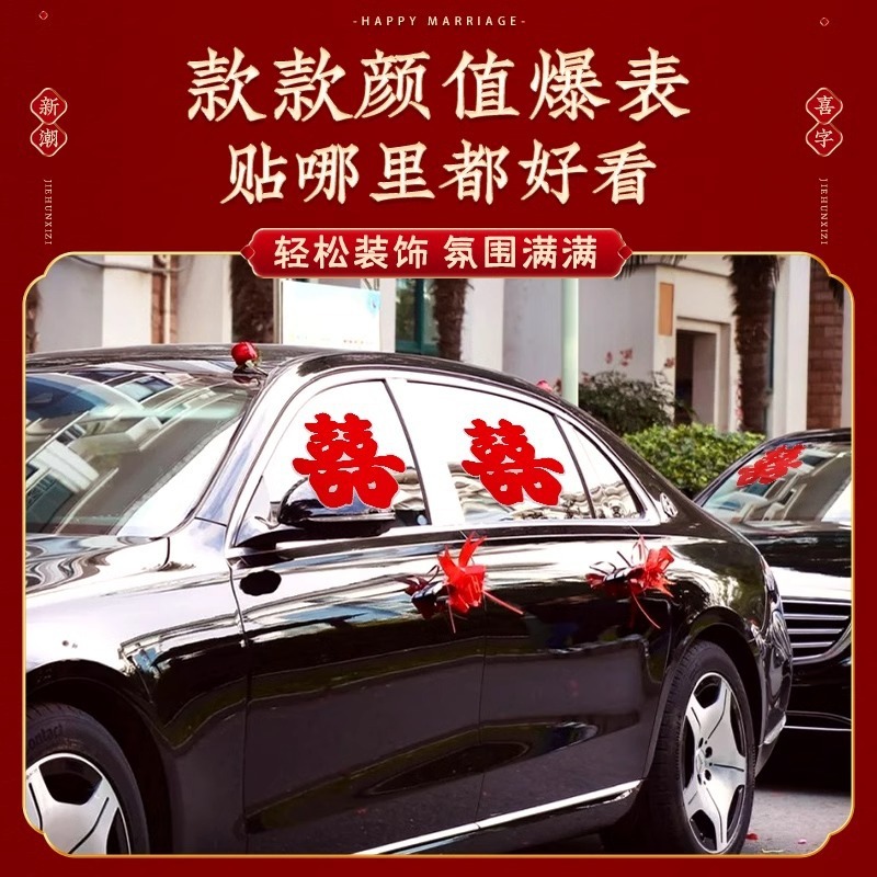 웨딩 해피 단어 정전기 스티커 웨딩 카 해피 단어 스티커 창 꽃 종이 컷 스티커 장식 웨딩 용품스토어 가기
