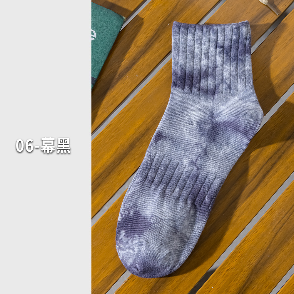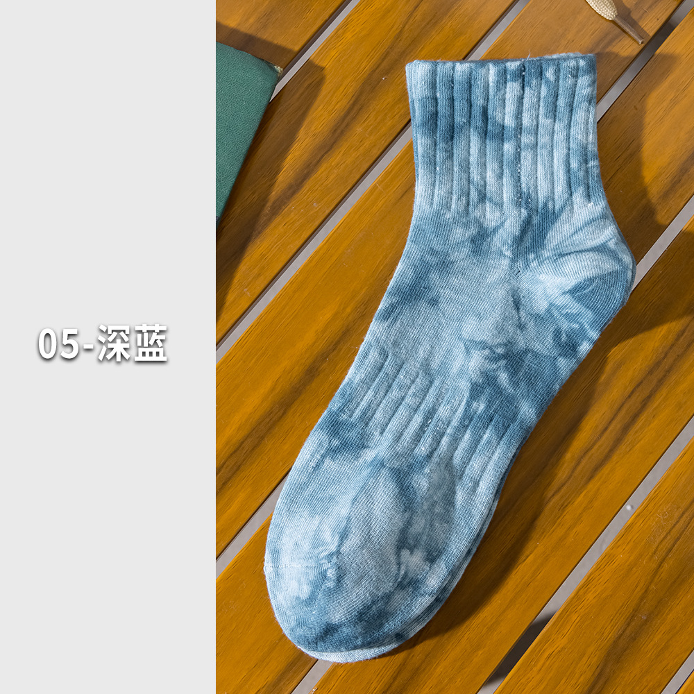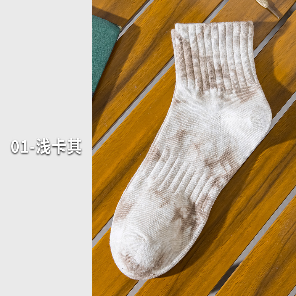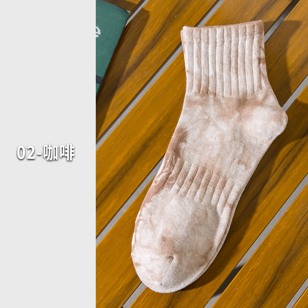 25 봄과 여름 양말 여성용 짧은 튜브 넥타이 염색 코튼 양말 커플 스트리트 트렌디 양말 캐주얼 중형 튜브 땀 흡수성 남성 양말